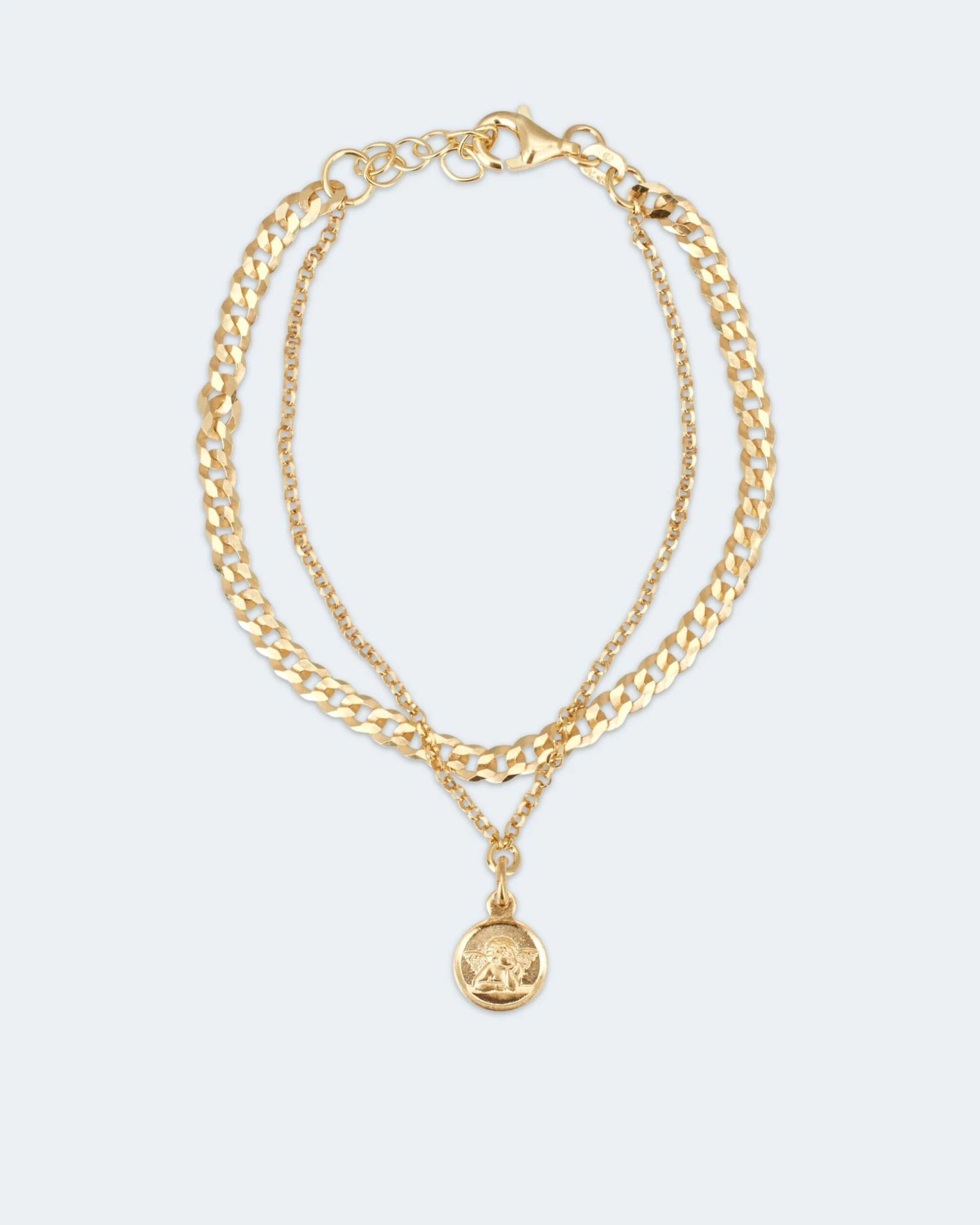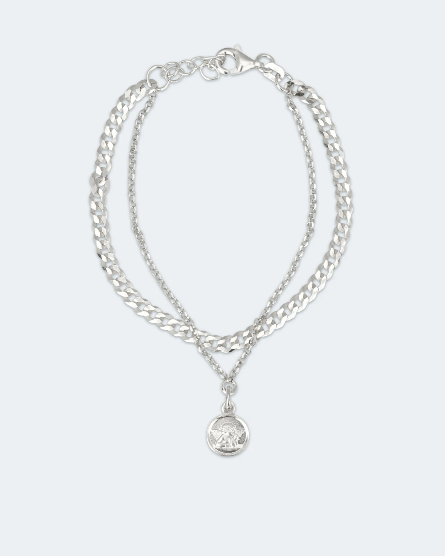 2 Armbänder in 1 und ein bezauberndes Schmuckstück mit Glücksbringer-Charakter: Das 2-reihige Fantasy-Armband ist ein Blickfang der Extra-Klasse. Es ist aus 925er Sterlingsilber gefertigt und wahlweise vergoldet oder silberweiß veredelt. Vor allem hält es eine Anhängerplatte, auf dem der weltbekannte Engel des Malers Raffael zu sehen ist. Da schlagen die Herzen modebewusster Schmuckliebhaberinnen höher!