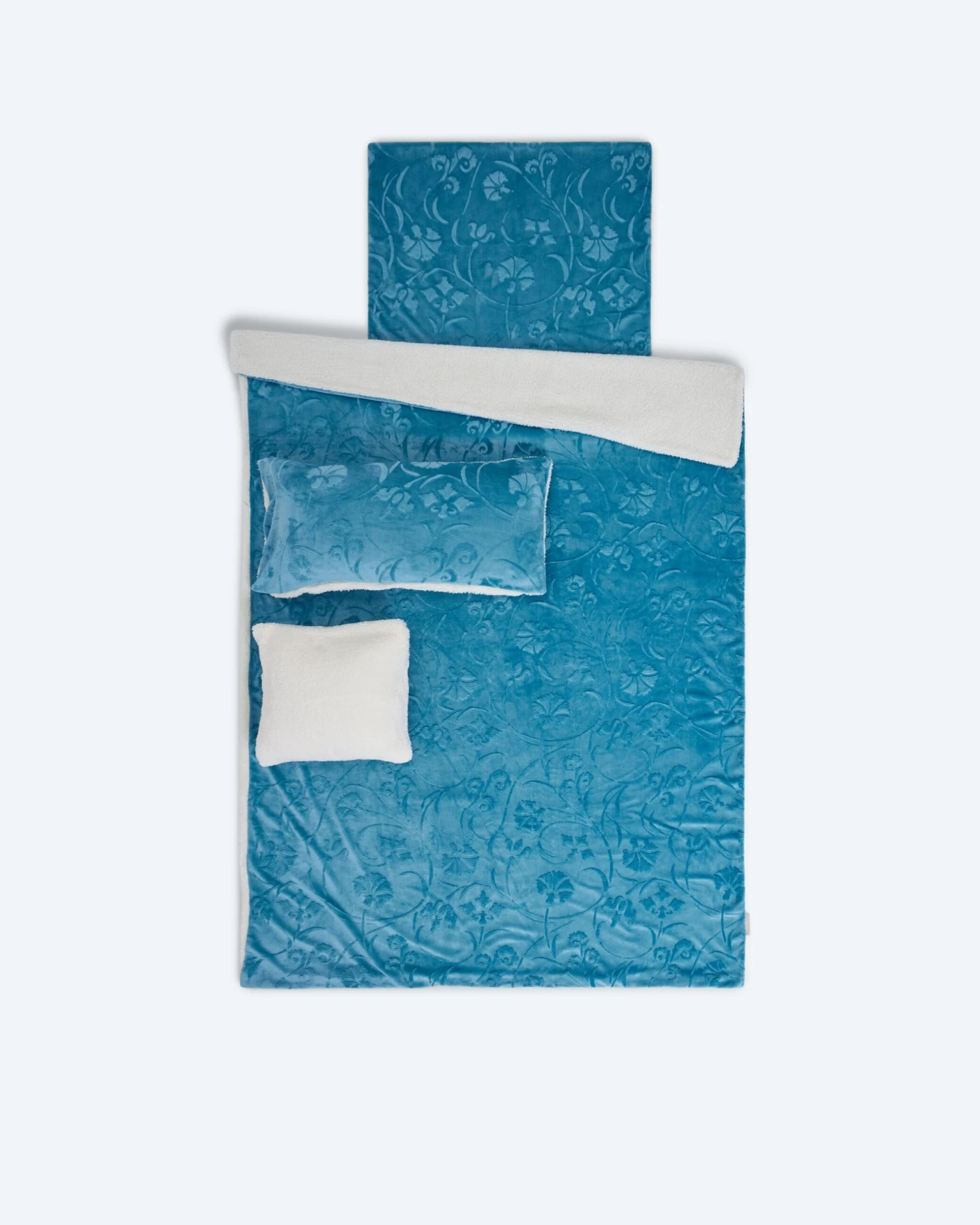 Das Set besteht aus drei Kissenbezügen mit 40 x 40 cm, 40 x 80 cm und 80 x 80 cm. Der Bettdeckenbezug kann wahlweise in Normal- oder Übergröße bestellt werden.