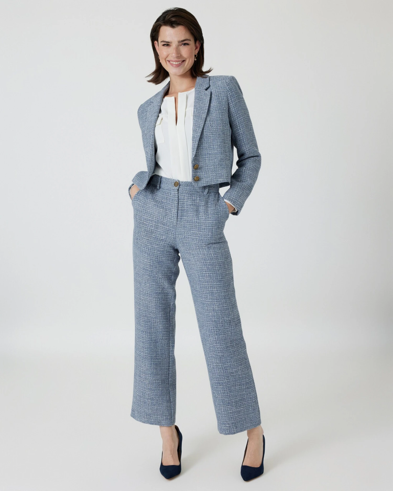 Ob im Office, bei wichtigen Terminen oder abends zum Ausgehen – mit diesem stylischen Blazer zaubern Sie ruckzuck elegante Outfits für die unterschiedlichsten Anlässe. Der freche Blazer in kurzer Form kommt mit Reverskragen und Knopfverschluss. Das Uni-Design in zwei trendigen Wahlfarben wird durch das eingewebte Bouclé-Muster aufgelockert. Tipp: Eine passende Hose finden Sie unter der Bestellnr. 461934.
