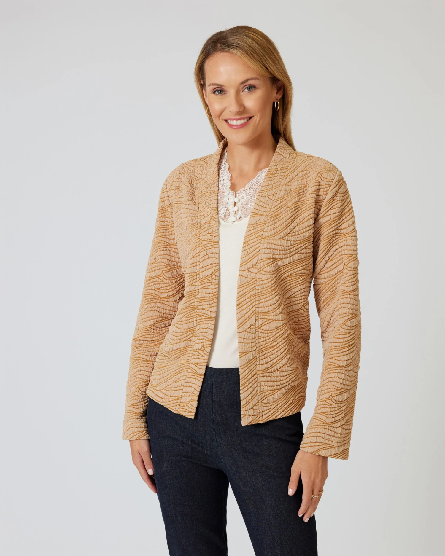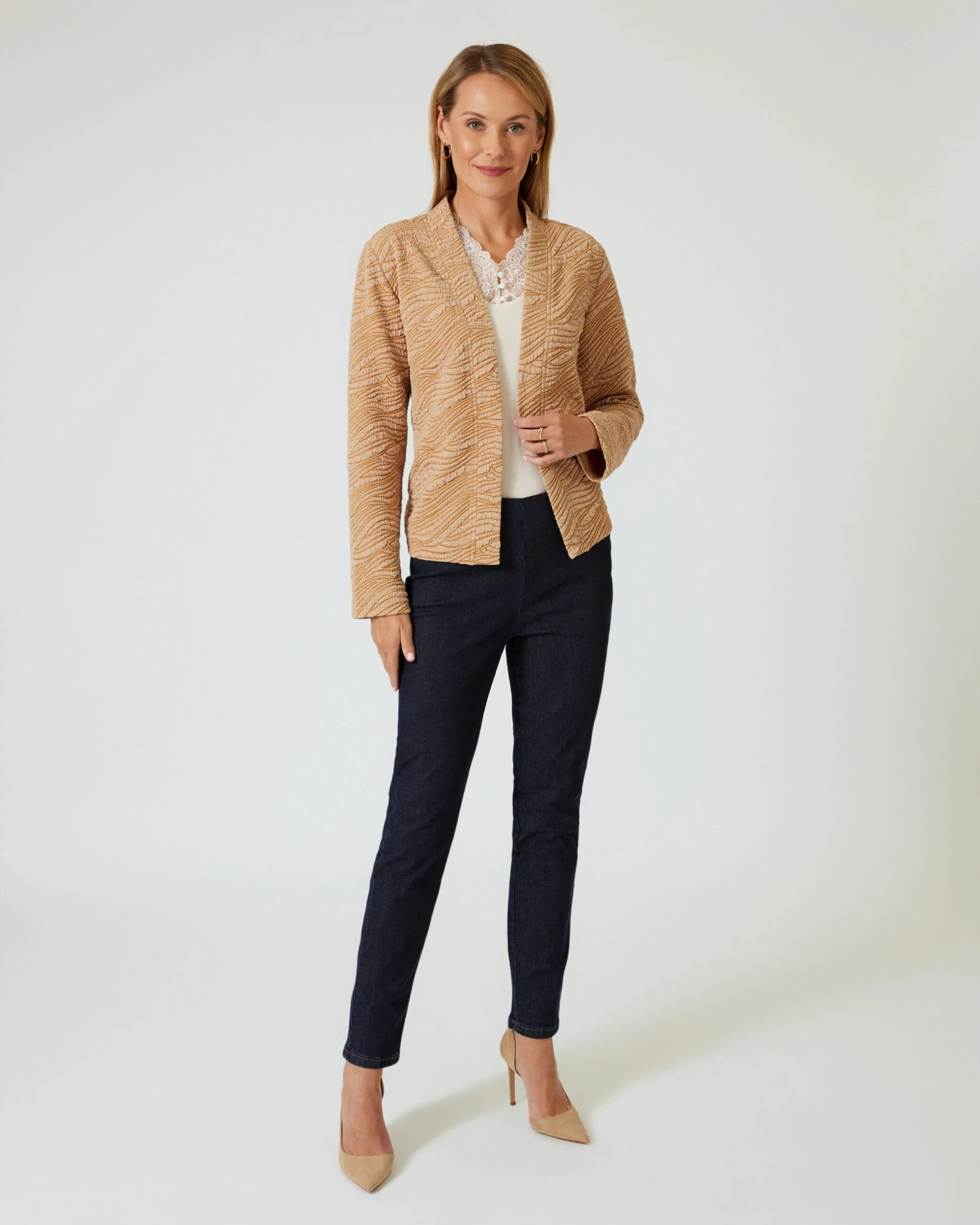 Mit diesem Alfredo Pauly Blazer setzen Sie originelle Modeakzente. Die kurze Jacke in offener Form hat einen klassischen Schalkragen, damit für jeden sichtbar wird, welche Bluse oder welches Shirt Sie darunter tragen. Zum Fashion-Eyecatcher der Jacke wird allerdings das raffinierte Allover-Strukturmuster, das dem markanten It-Piece eine lebhafte Dynamik verleiht. Ob zu Jeans oder Chinos – die Blazerjacke gibt jedem Outfit eine moderne, individuelle Note.