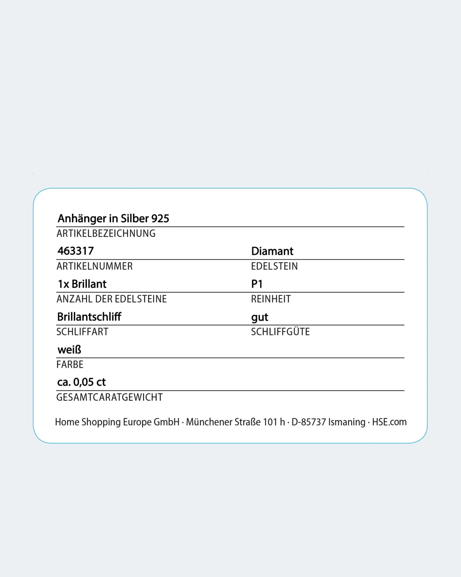 Wie in einer silbernen Schaukel scheint der Brillant-Solitär in diesem geschwungenen Anhänger aus der Linie Diajeune zu schweben. Das Schmuck-Accessoire ist aus rhodiniertem 925er Sterlingsilber gefertigt und wird ein Highlight an Ihren Silberketten. Der Brillant wird in einer klassischen Zargenfassung gehalten, verfügt über die Reinheit P1 und einen guten Schliff. Freuen Sie sich auf ca. 0,05 Karat zum Umhängen.