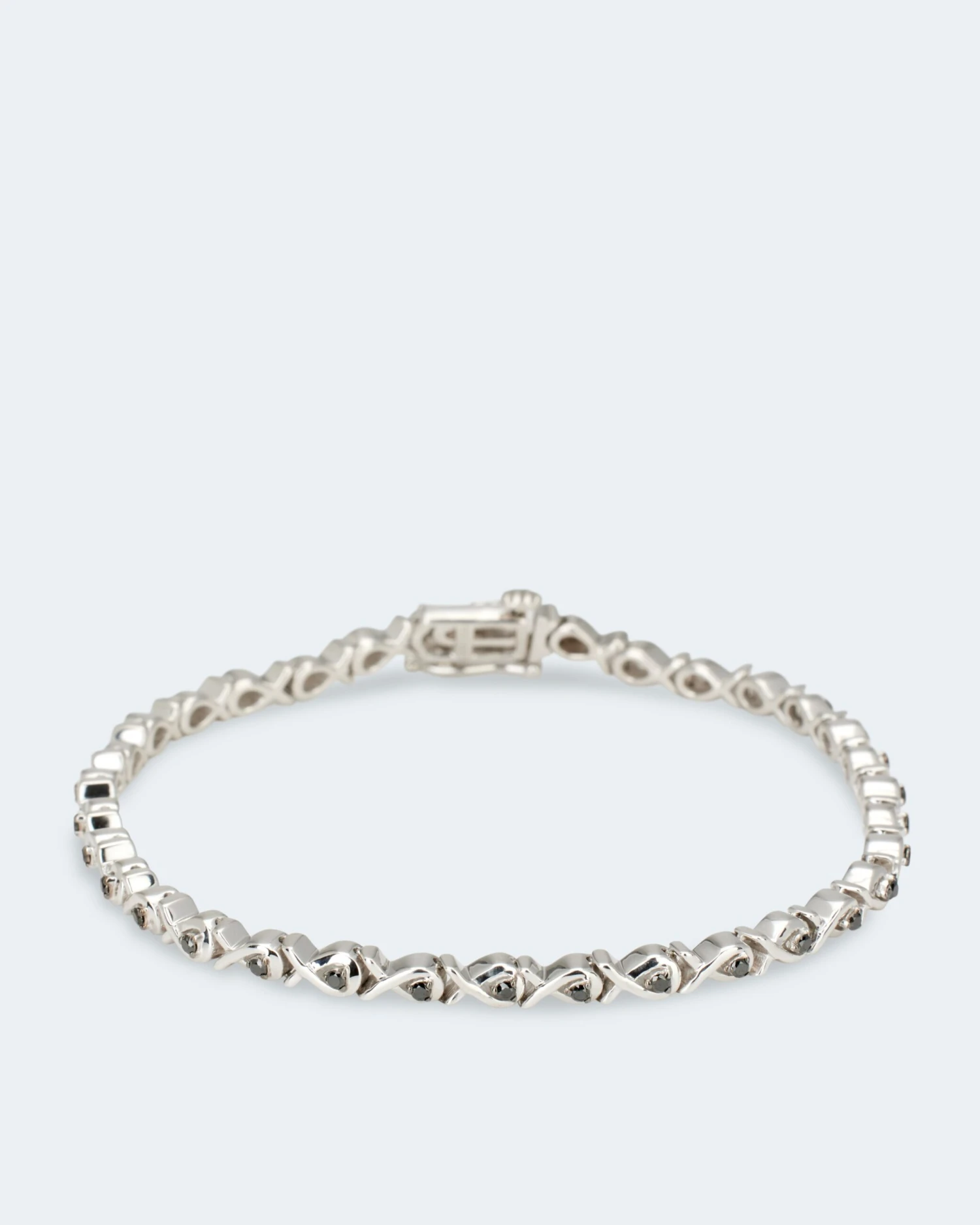Entdecken Sie das Besondere mit diesem Armband von Diajeune: Insgesamt 34 schwarze Diamanten veredeln dieses zart geschwungene Schmuckstück und sorgen für ein magisches Funkeln an Ihrem Handgelenk. Die Kombination der Edelsteine mit rhodiniertem 925er Sterlingsilber sorgt für harmonische Raffinesse. Egal, ob Sie dieses Armband zu einem Abendkleid tragen oder zum legeren Jeans-Outfit: Mit diesem Accessoire zeigen Sie, dass Sie Stil und Klasse besitzen.