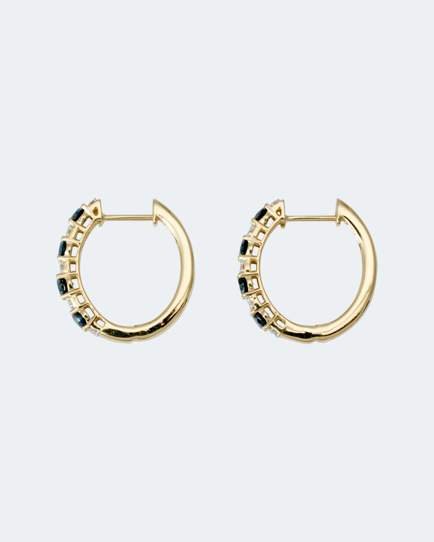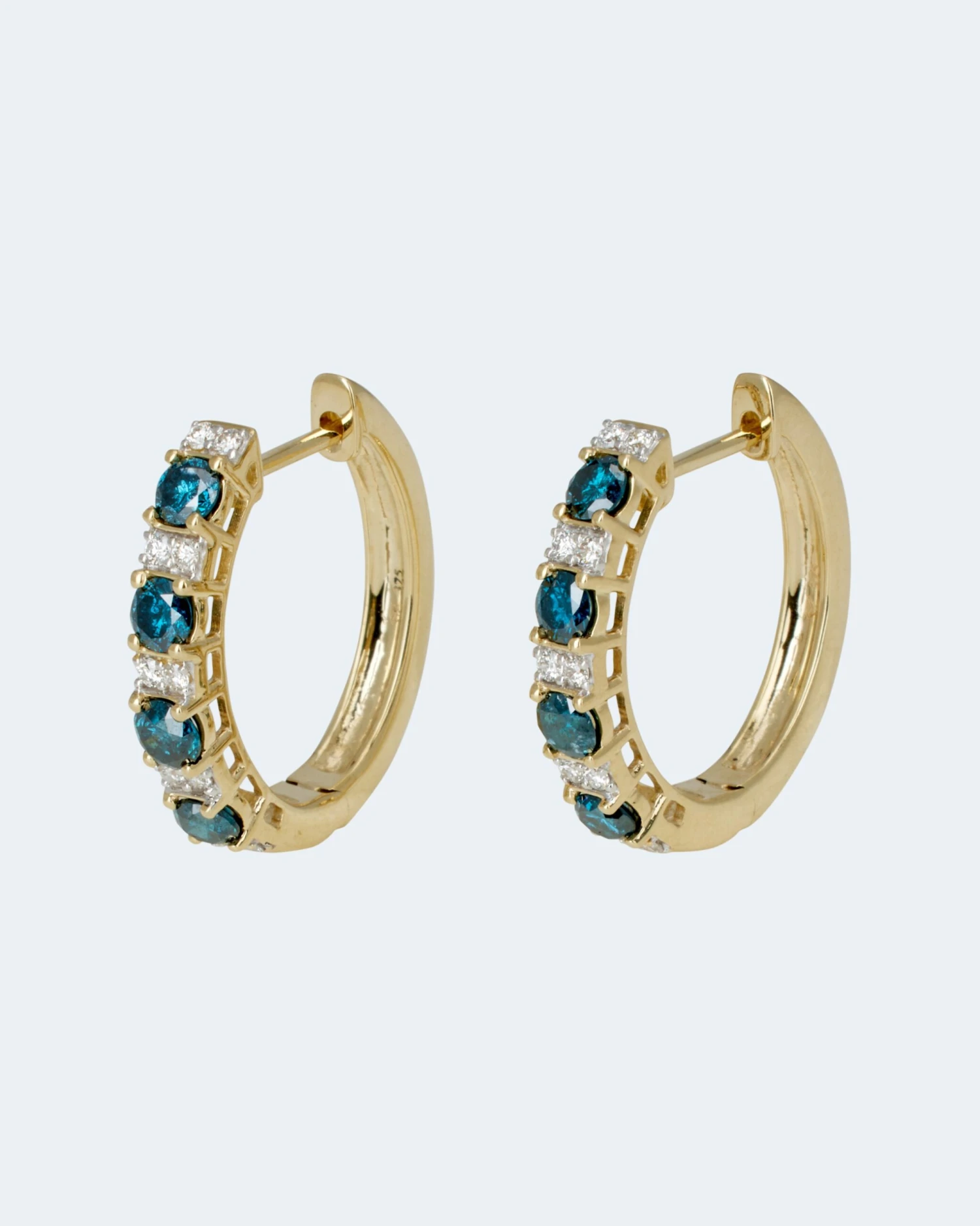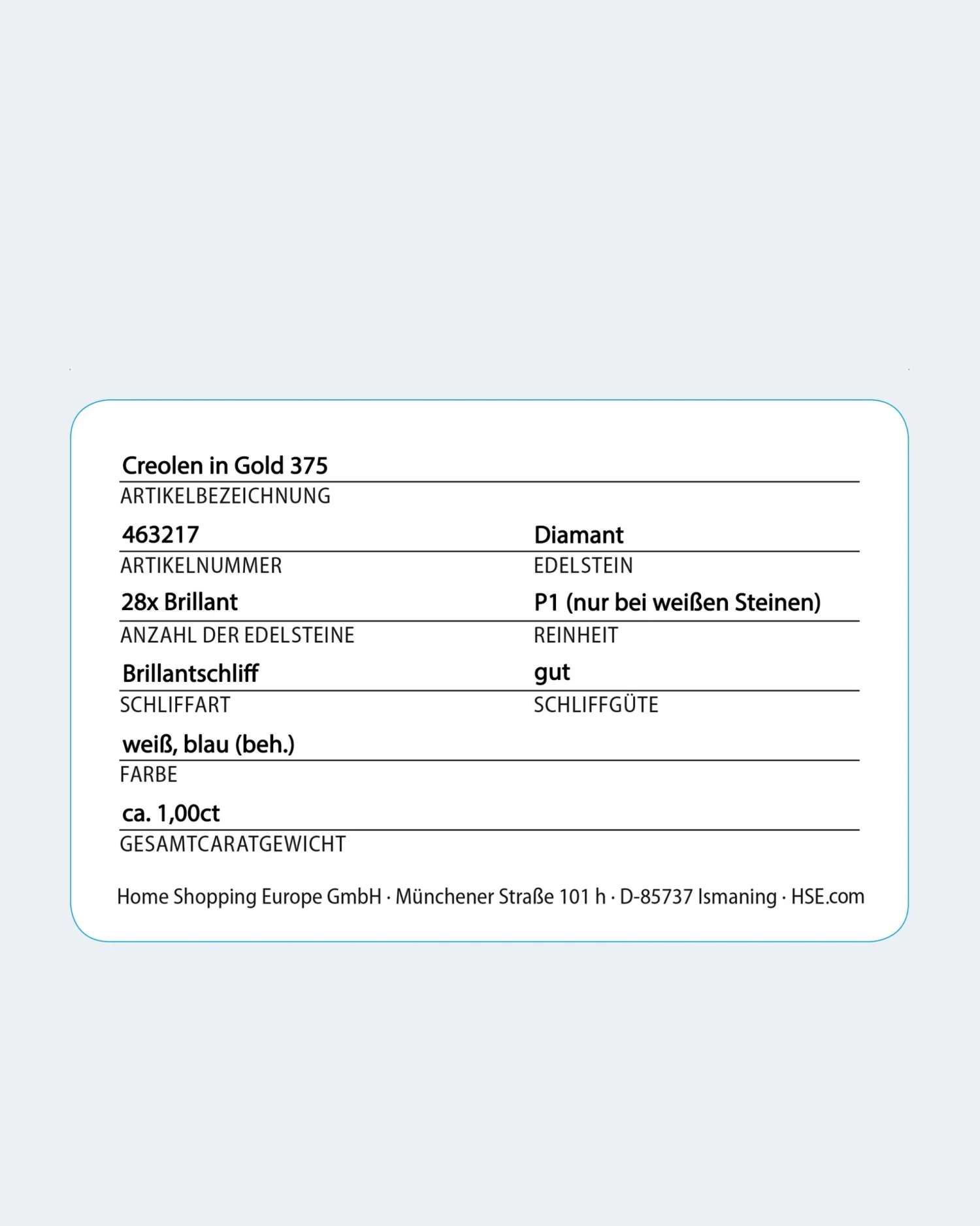Nicht umsonst zählen Creolen zum beliebtesten Ohrschmuck. Sie stehen jeder Frau und passen einfach immer. Diese hier aus 375er Gelbgold schmücken Sie mit blauen und weißen Brillanten. Die edlen Steine sind auf der vorderen, sichtbaren Seite im Wechsel arrangiert – ein Design, das Ihnen im Handumdrehen eine elegante und feminine Ausstrahlung schenkt. Genießen Sie, wann immer Sie wollen, diesen ausdrucksstarken Brillant-Look, der garantiert für bewundernde Blicke sorgt.