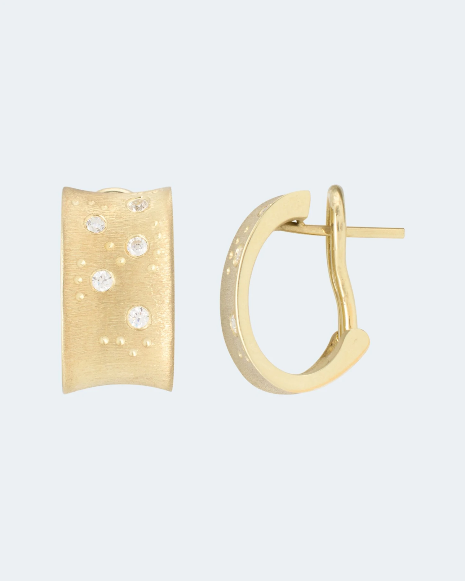 Jeder Ohrstecker ist mit 5 weißen Brillanten in gutem Schliff besetzt. Es handelt sich – wie immer bei Schmuck aus der Linie Pfeffinger Brillanten – um Steine in SI-Reinheit. Das bedeutet, dass erst unter 10-facher Vergrößerung kleine Einschlüsse sichtbar sind. In der Pfeffinger Schmuckmanufaktur werden ausschließlich Brillanten im Vollschliff mit 56 Facetten und einer Tafel verwendet.