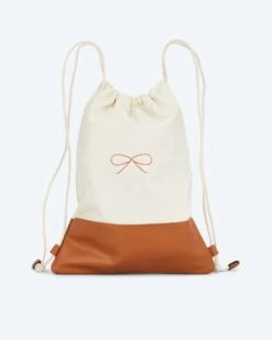 Die Gymbag ist im oberen Bereich aus robustem Canvas gefertigt und besteht unten aus Lederimitat. Die Front der vielseitigen Tasche ziert die charakteristische Schleife als Markenzeichen der Linie.