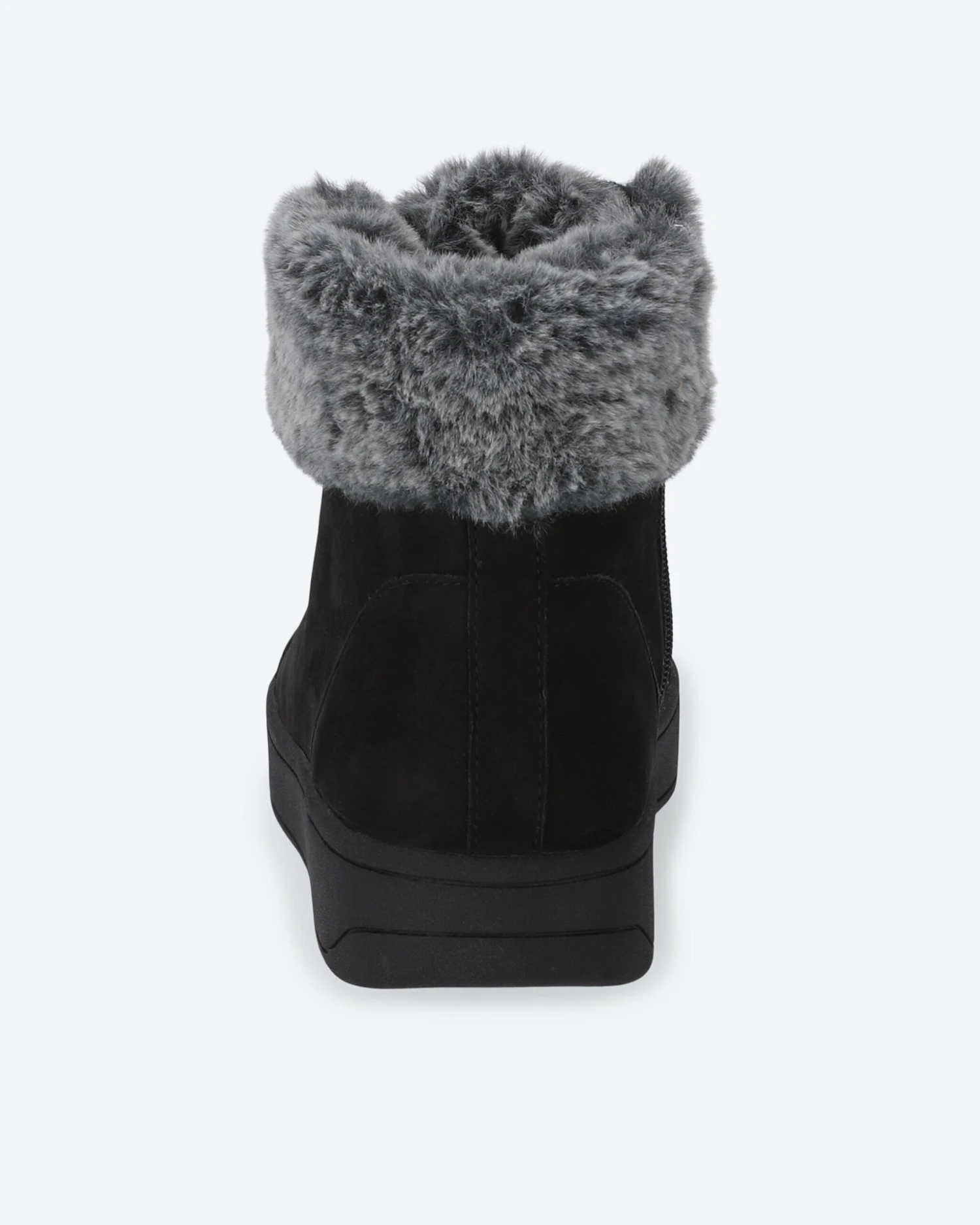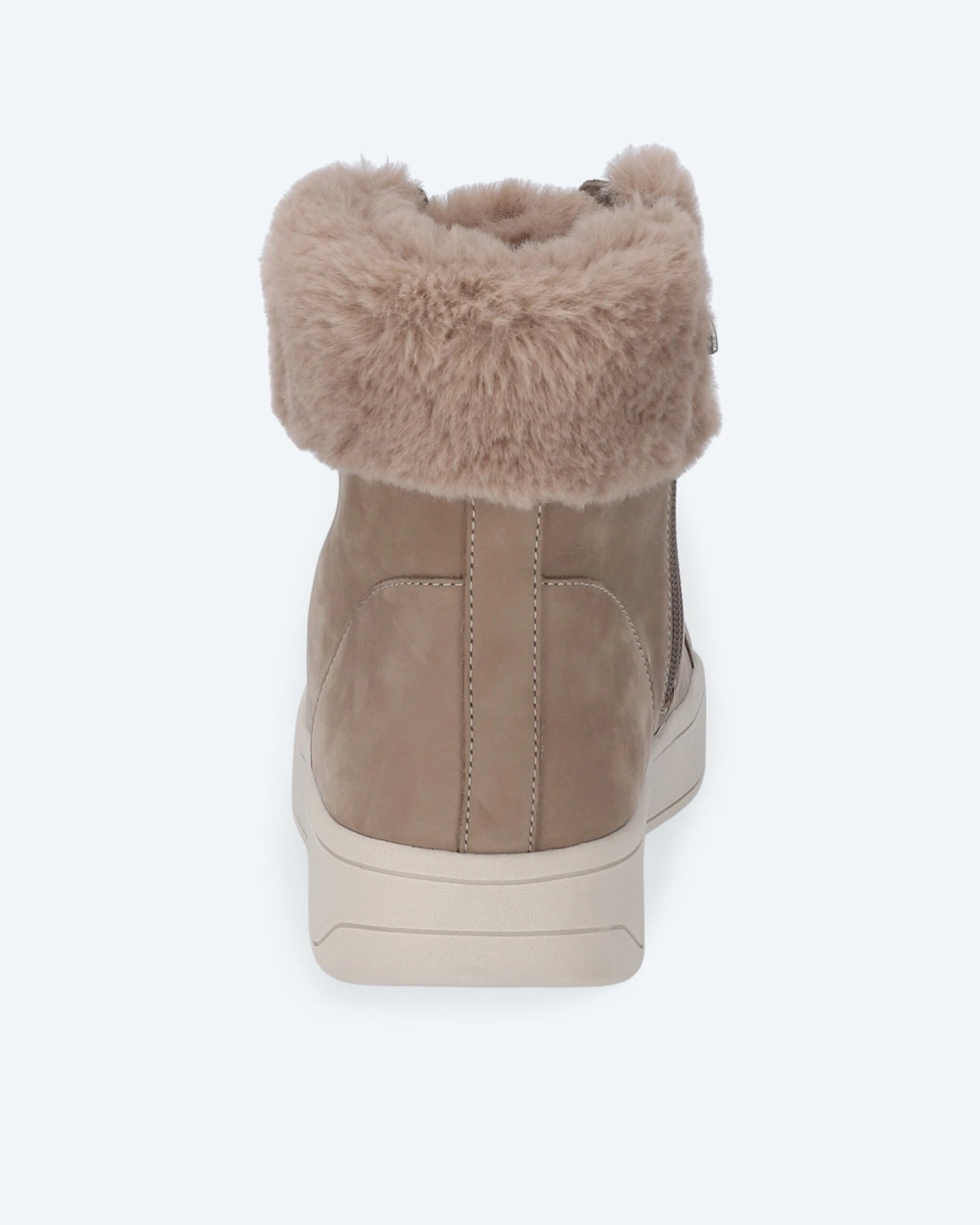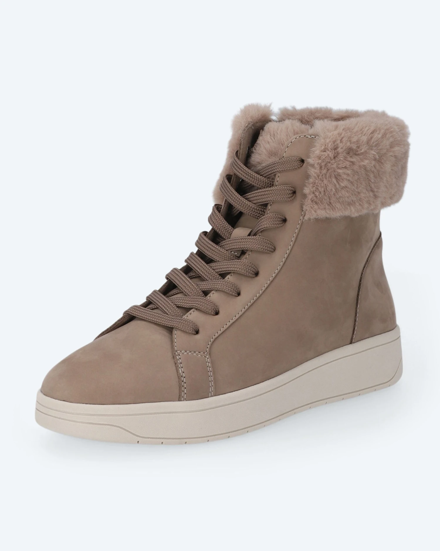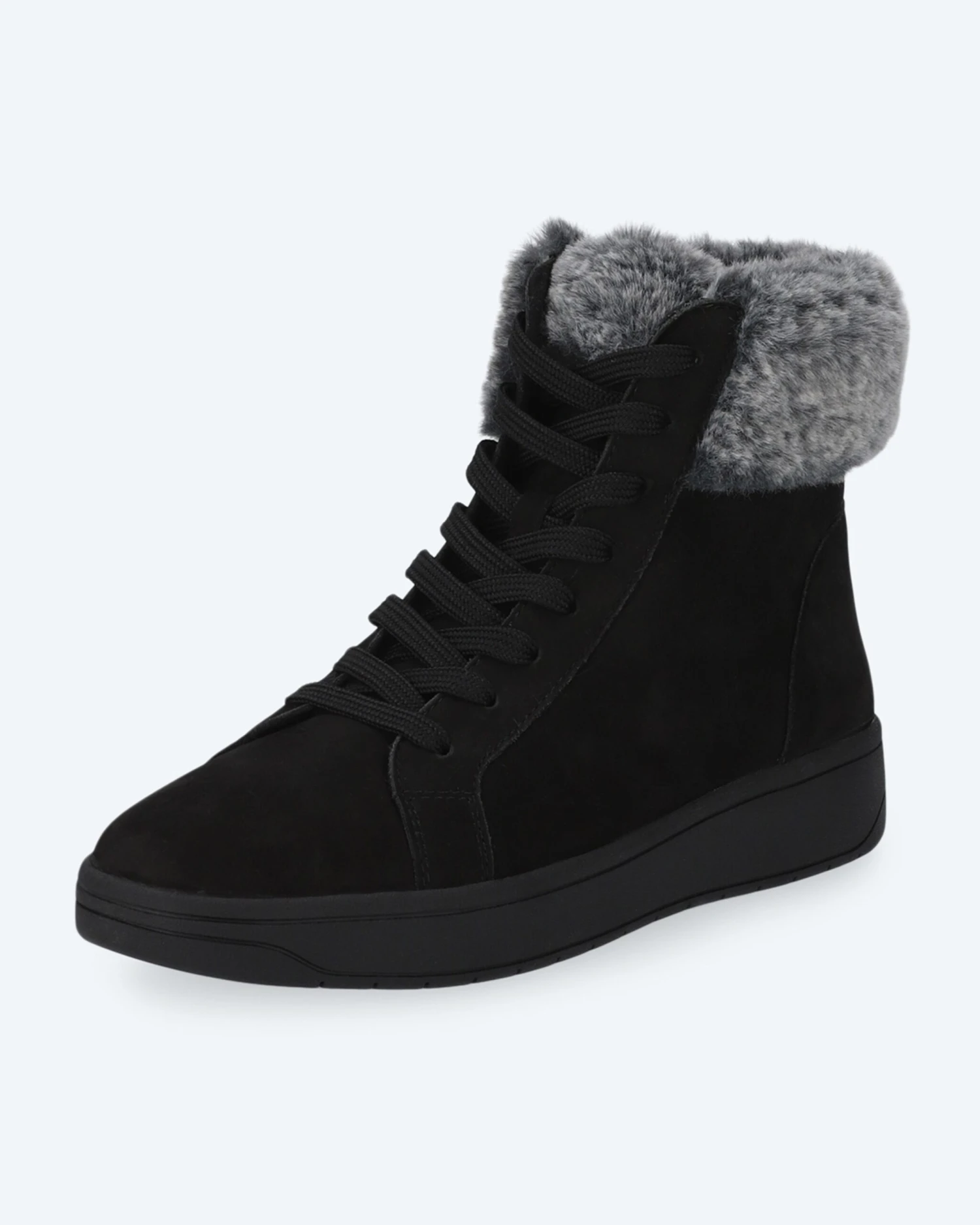 Mit den knöchelhohen, warm gefütterten Boots aus weichem Nubukleder kommen Sie warm und topmodisch durch die kalten Tage. Zum Eyecatcher wird die Fellumrandung am Schaft. Für den sportiven Look sorgen die Schnürung zur bequemen Weitenanpassung sowie die profilierte Plateausohle in Kontrastfarbe. Dank des Reißverschlusses ist ein leichter Einstieg gewährleistet. Die Boots passen zu Hosen, sehen aber auch zu Röcken und Kleidern schick aus. Neben dem tollen Design glänzen die Boots durch ihren herausragenden Tragekomfort. Sie können die Innensohle für eigene Einlagen leicht wechseln und der weiche Memory-Schaumstoff im Memotion Fußbett passt sich an die Fußform ergonomisch an. Exklusiv bei HSE.