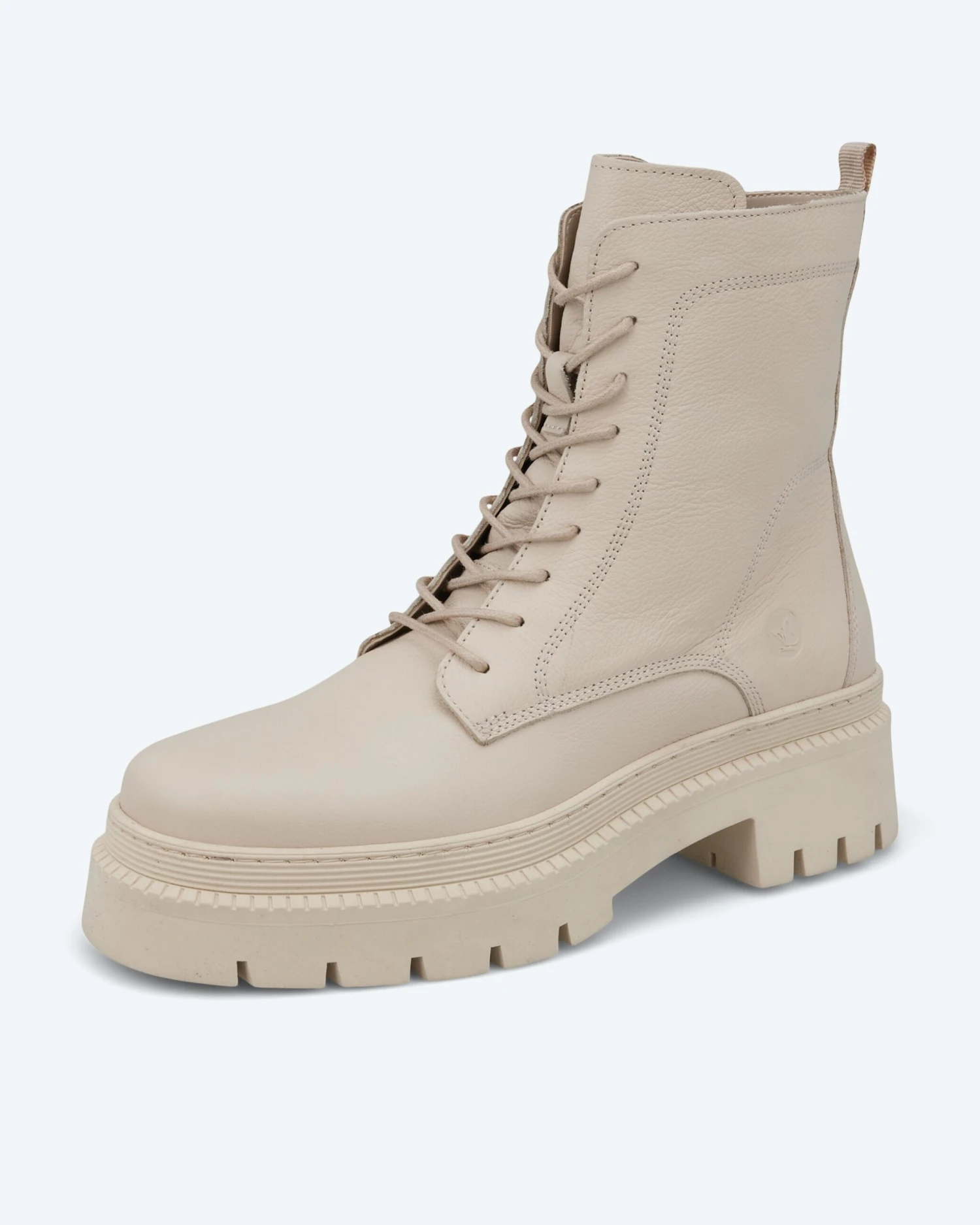 Edler Nappaleder-Look mit dem gewissen Etwas – so präsentiert sich der trendige Boot von Caprice. Der Boot ist mit einer klassischen Schnürung zur Regulierung der Passform ausgestattet und wird innen mit einem Reißverschluss verschlossen. Die Innensohle ist für Einlagen auswechselbar. Die derbe Profilsohle macht den Boot zum Highlight. Neben all der schönen Optik ist der Schuh auch superbequem. Der weiche Memory-Schaumstoff im Memotion Fußbett passt sich an die Fußform ergonomisch an und die Weite G bietet auch kräftigeren Füßen genügend Spielraum.