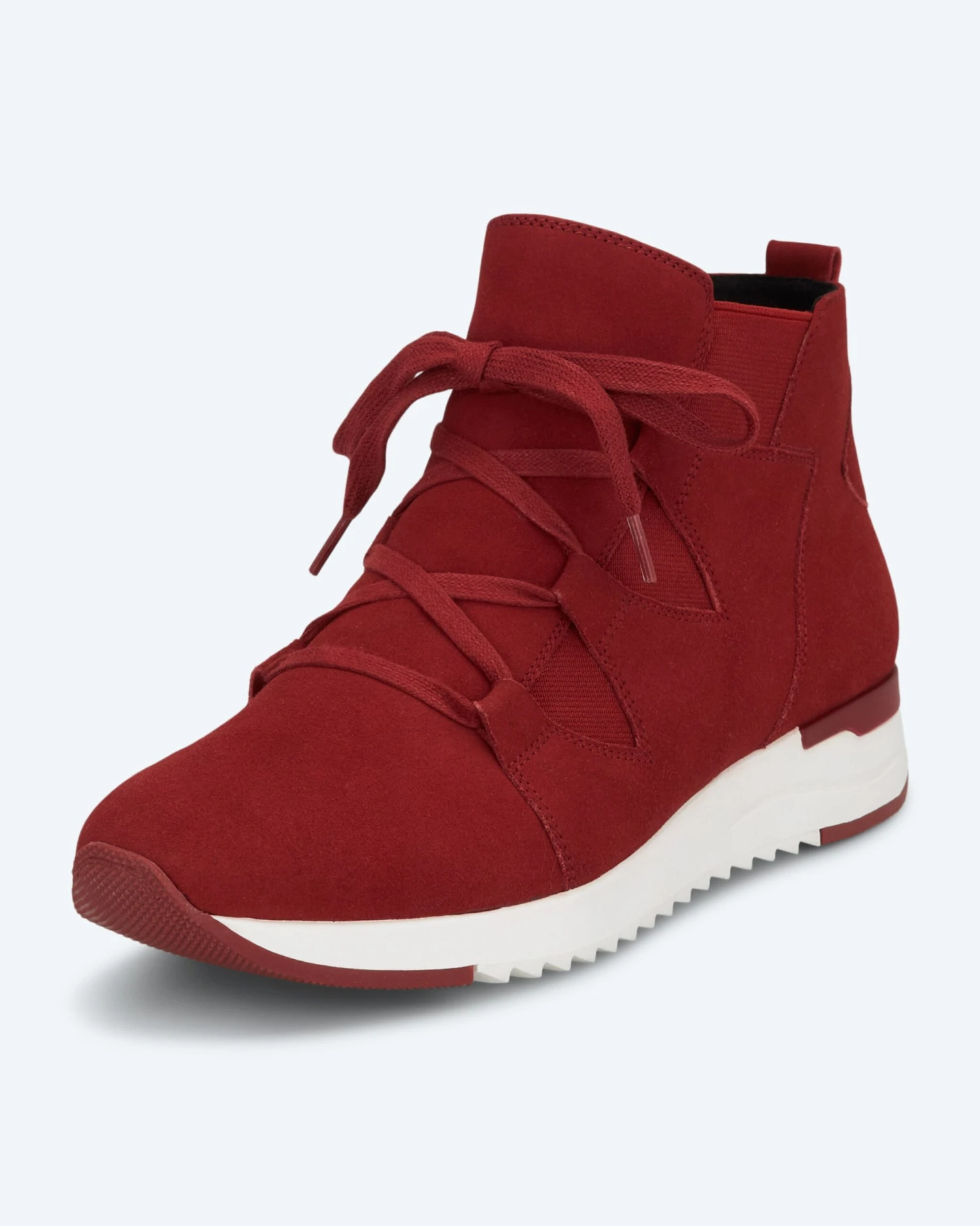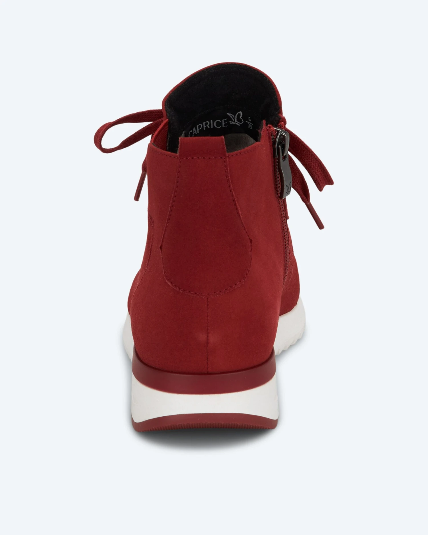 Mit diesem angesagten knöchelhohen Hightop Sneaker kommen Sie schick und bequem durch die kälteren Tage. Der Schuh aus der Kollektion von Caprice ist aus hochwertigem Veloursleder gefertigt und mit Textil gefüttert. Topmodisch sind die Schnürsenkel farblich passend gestaltet. Abgerundet wird die modische Optik durch die zweifarbige Laufsohle. So entsteht ein eleganter und gleichzeitig lässiger Look.