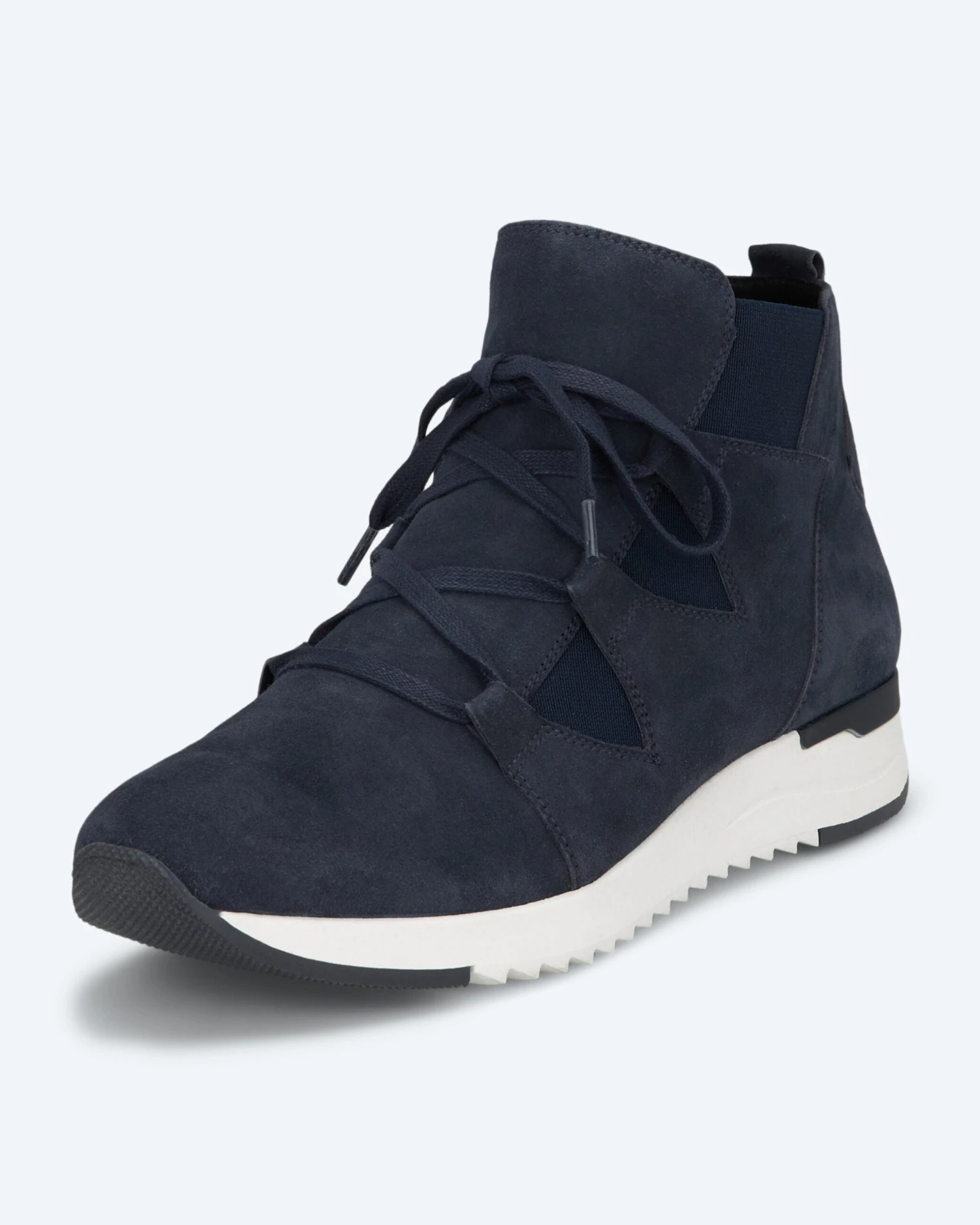 Neben der Schnürung zum Fixieren verfügt der Sneaker über einen innenliegenden Reißverschluss. Elastik an der Seite erleichtert den Einstieg.