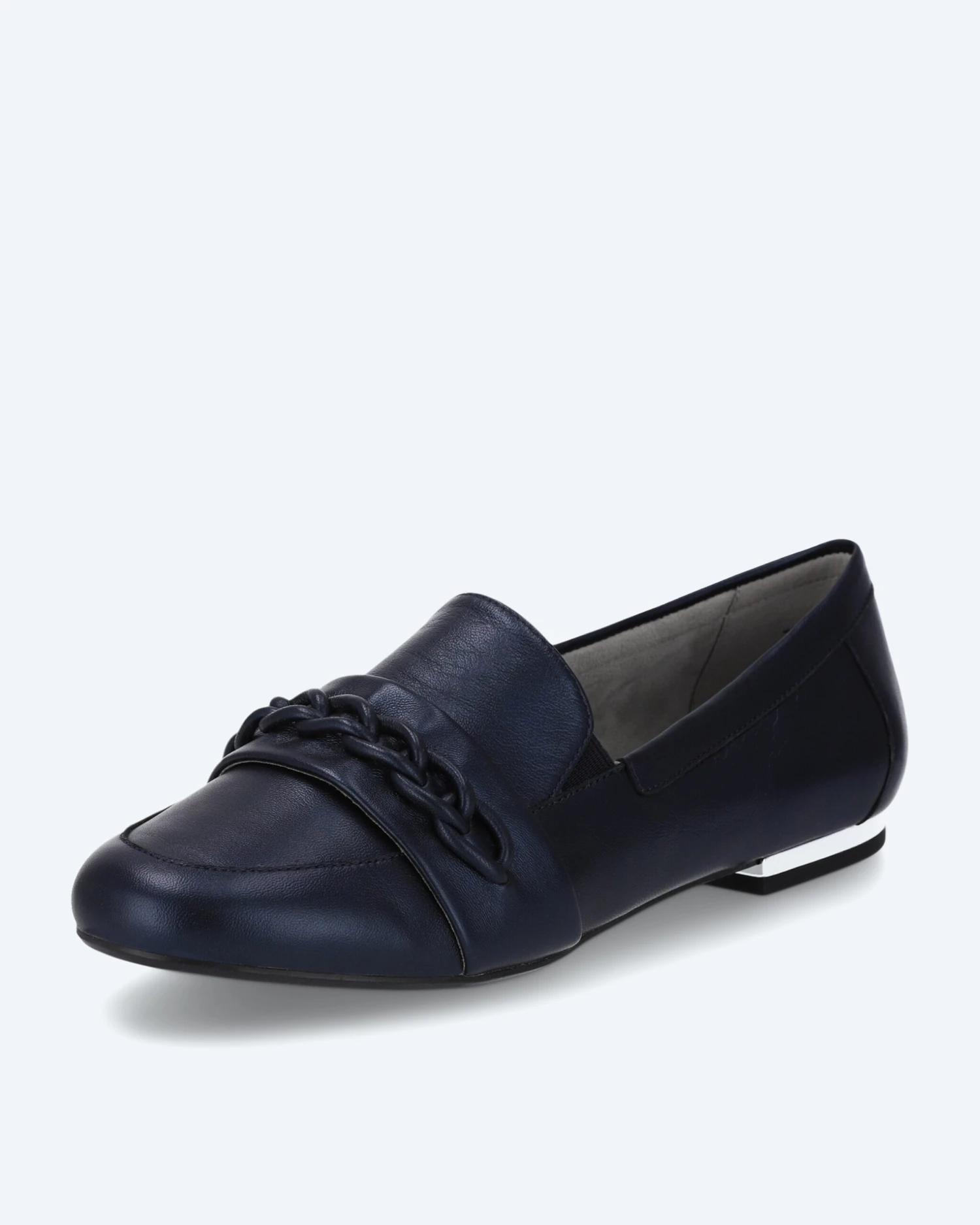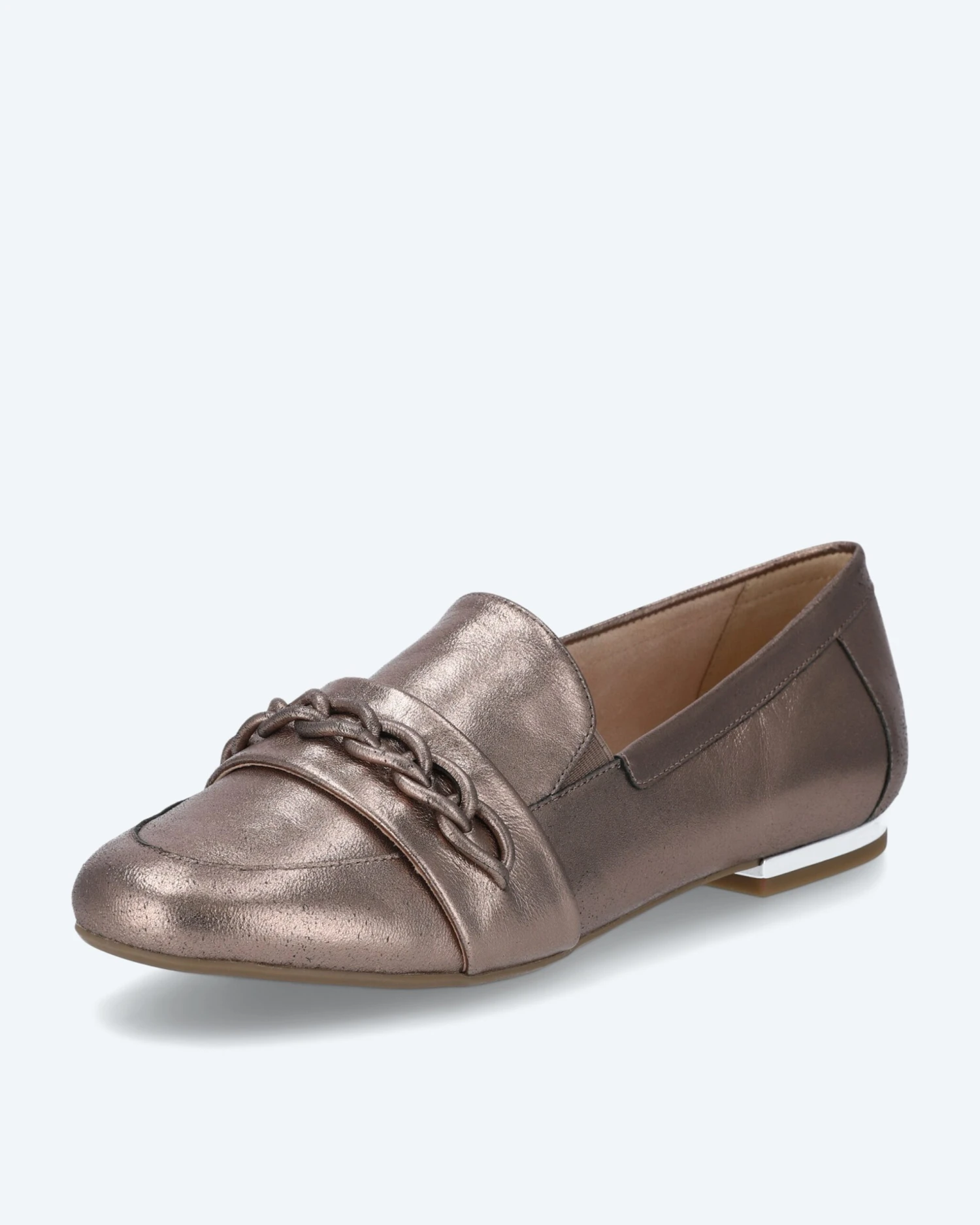 Der Loafer besitzt eine betont flache Form mit runder Fußspitze. Dadurch ist er besonders bequem, sodass Ihr Gang auch nach längerem Tragen noch leicht und beschwingt sein wird. Dazu trägt auch die bequeme G-Weite bei.