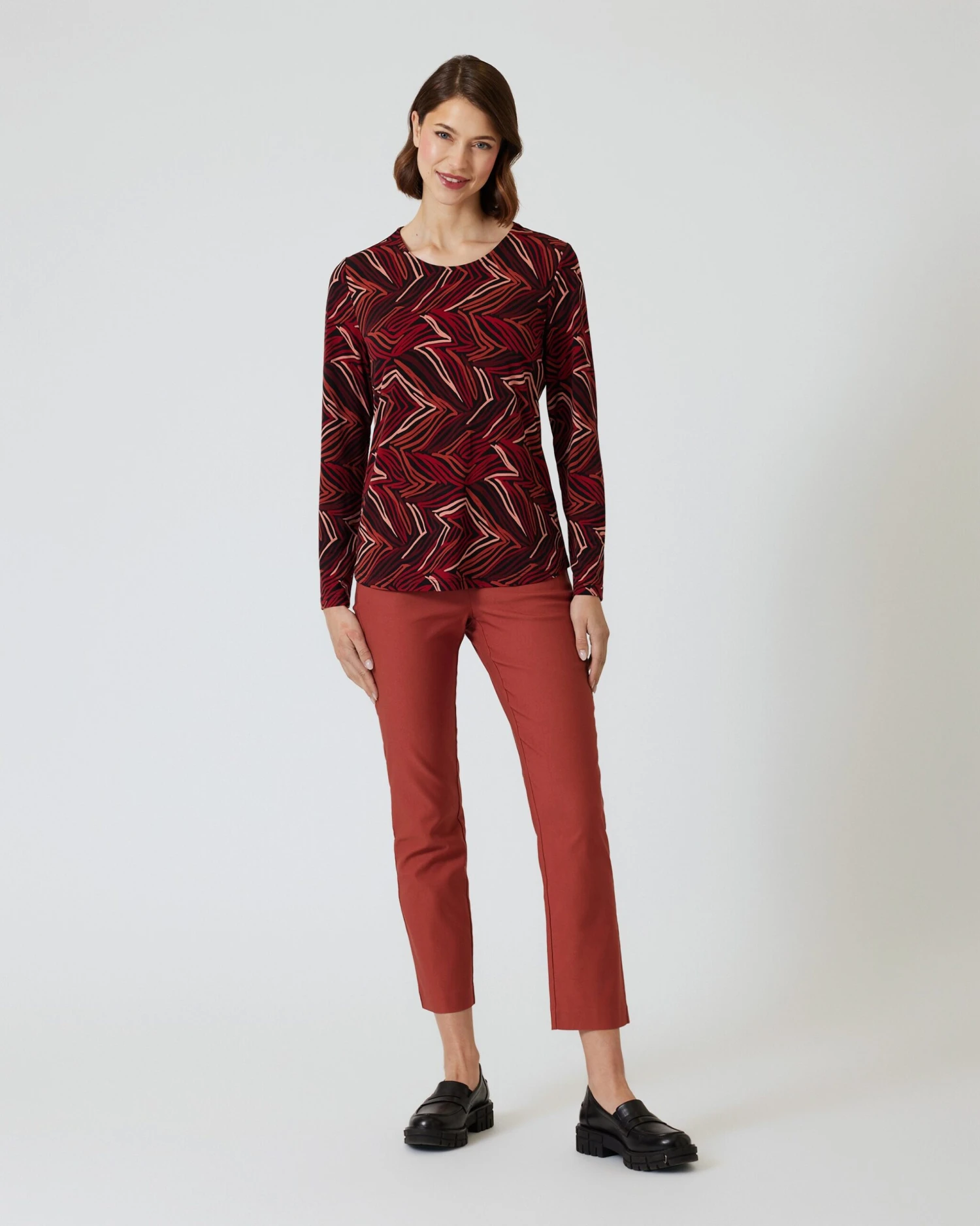 Die Hose ist gerade geschnitten und in angesagter, verkürzter Länge designt. Der schmale Bund sitzt angenehm auf Nabelhöhe. Außerdem steht der vorteilhafte, gerade Schnitt jeder Frau und zaubert im Handumdrehen eine schöne Figur. Dazu ist Ihre neue Hose durch den hochwertigen Viskose-Mix mit Elasthan-Anteil superbequem.