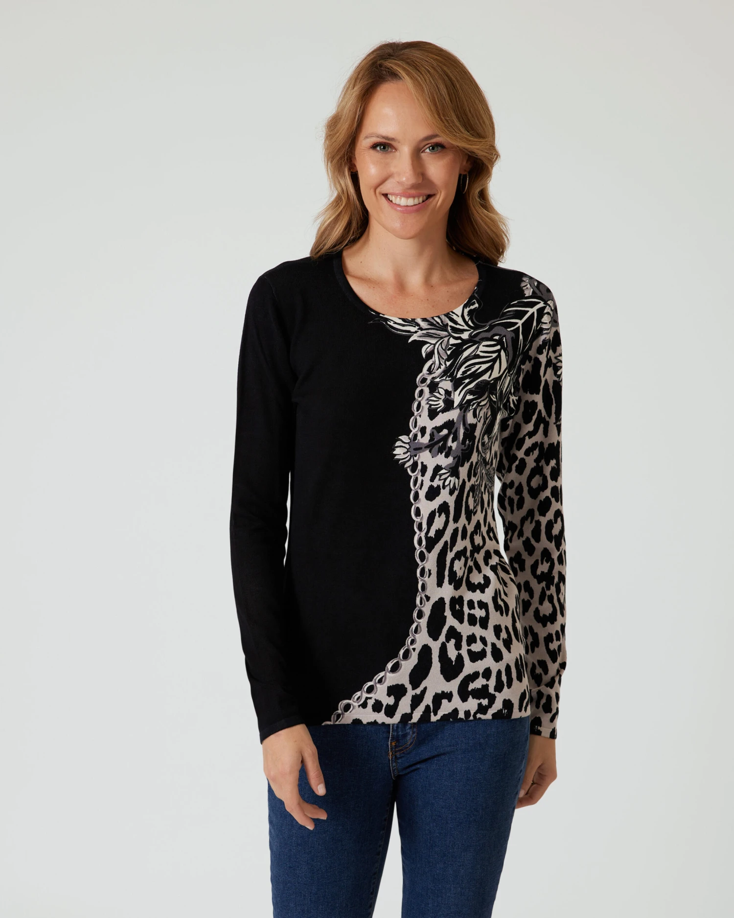 Die Besonderheit dieses hochwertigen Ovanti Classic Pullovers ist sein aufwendiger und detailgenauer Print. Der Druck mit Animal-, Floral- und Schmuckelementen wirkt betont feminin und passt perfekt auch zu eleganteren Hosen und Röcken. Der Schnitt ist leicht tailliert und verfügt über lange Ärmel und einen runden Ausschnitt. Gefertigt aus einem feinen und pflegeleichten Strick mit Viskose.