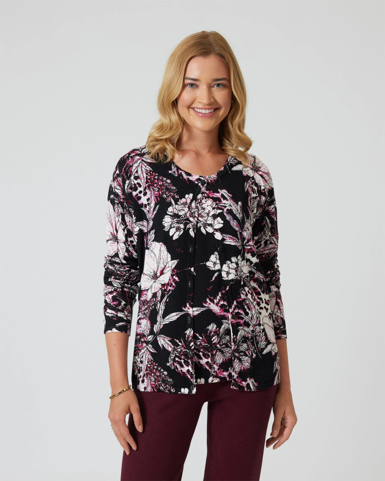 Mit diesem herrlichen Classic Twinset von Ovanti erweitern Sie Ihre Garderobe um viele stilvolle Kombimöglichkeiten. Das Set besteht aus einem offenen Cardigan und einem Kurzarmshirt, beide im gleichen wundervollen Blumen-Design bedruckt. Beide Teile wirken toll zusammen, machen aber auch einzeln getragen Eindruck. Jeweils mit Rundhalsausschnitt und leichter Taillierung. In zwei Farben zur Wahl.