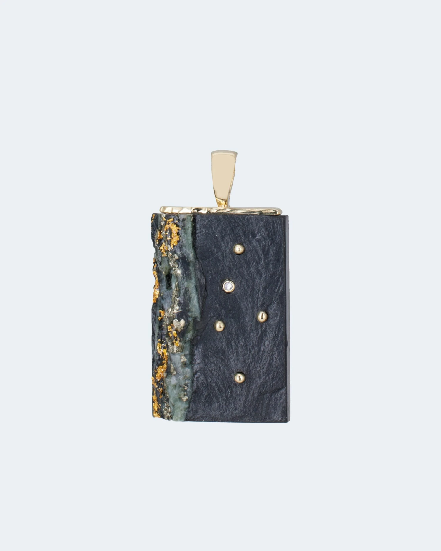Außergewöhnliche Form, faszinierende Edelsteinkombination. Der Anhänger aus der Linie „Sogni d’oro Classic“ wird an Ihren Ketten zum ganz besonderen Blickfang. Er verbindet Schiefer, Pyrit und Blattgold zu einem aparten Rechteck, das von einem Solitär-Brillanten zum Strahlen gebracht wird. Das Accessoire mit Clipverschluss aus 375er Gold wird einfach in Ihre Ketten eingehängt. Ein fantasievolles Highlight, das bewundernde Blicke anzieht.