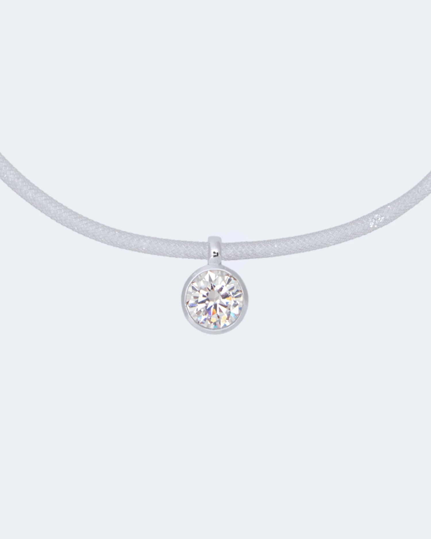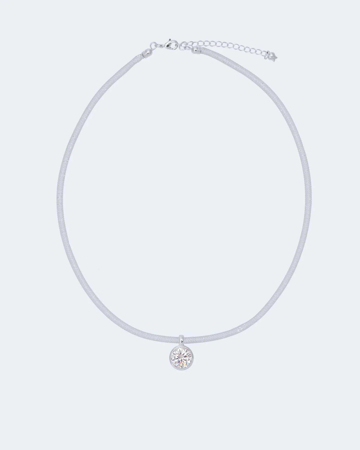Das Besondere: Die Kette ist aus einem feinen Mesh gefertigt, das komplett mit weißen Kristallen ausgefüllt ist. Der Briole-Anhänger präsentiert den prachtvollen Zirkonia in einer schlichten Zargenfassung.