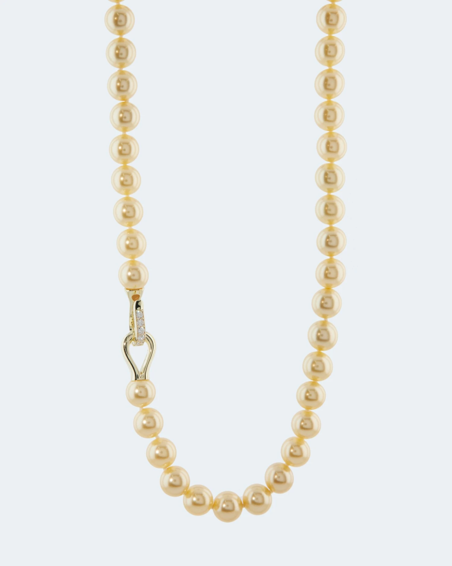 Das Collier hat einen Vario-Verschluss aus 925er Sterlingsilber. Zur Wahl rhodiniert im Weißgold-Look oder gelbgoldplattiert mit sonnigem Goldschimmer. Bei der Weißgold-Look-Variante sind die Perlen Tahitigrau, bei der gelbgoldplattierten champagnerfarben.
