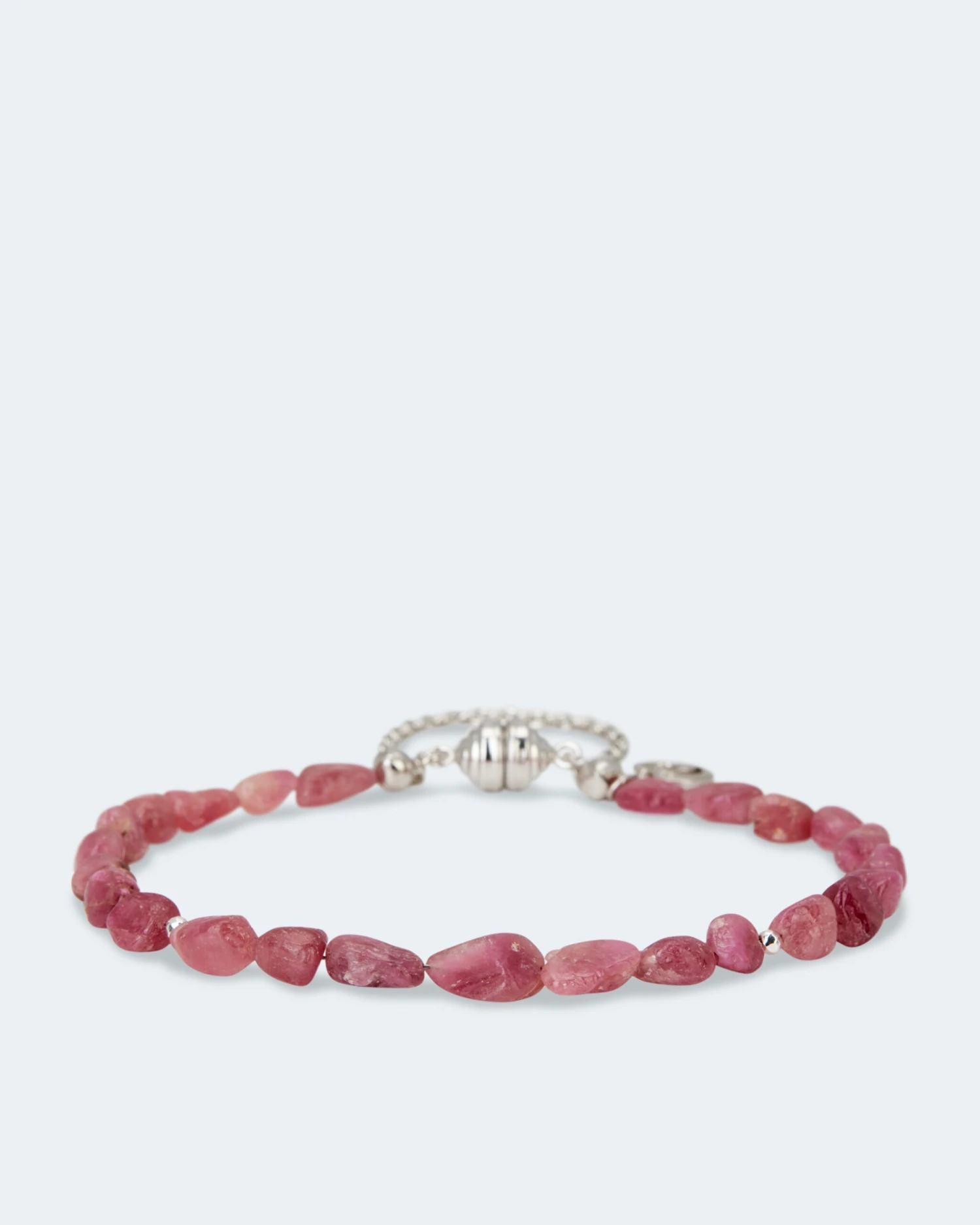 | Edelsteine: | Turmalin, pink Hämatit (beh.), silberfarben alles auf ummantelten Stahldraht gefädelt | |