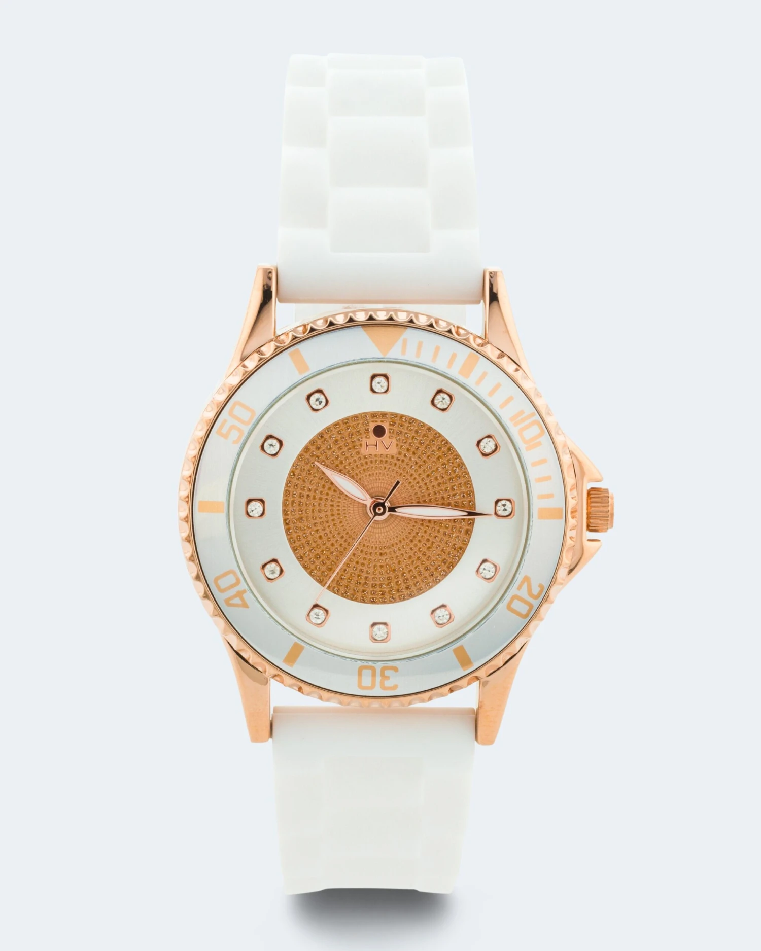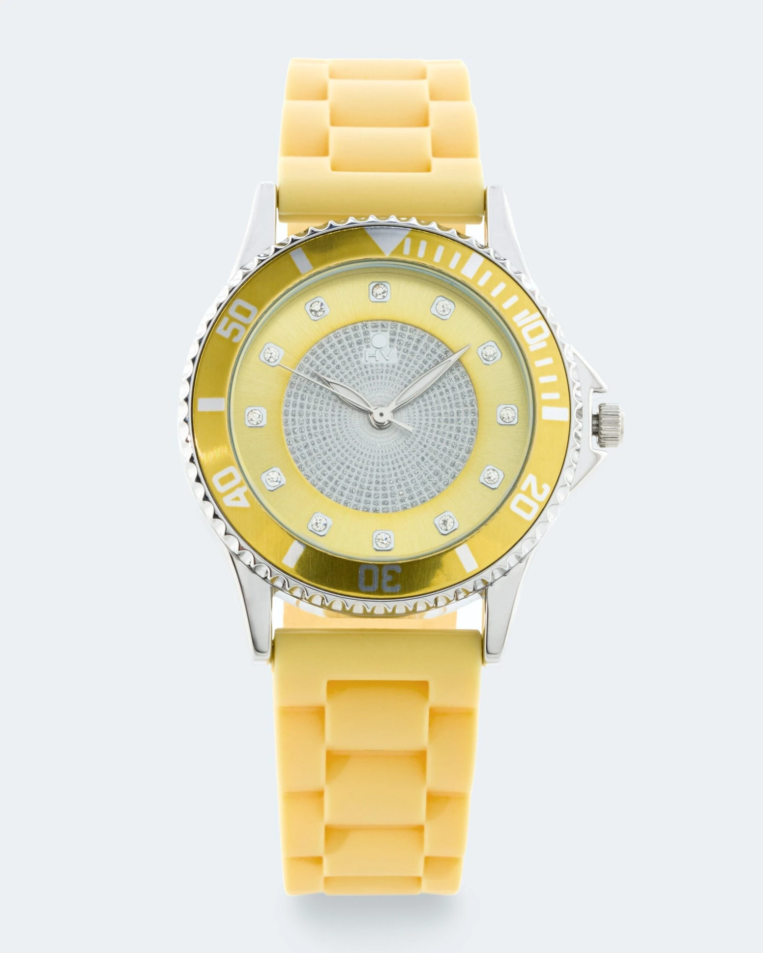 Diese Helena Vera Uhr mit farbigem Silikonband ist ein fröhlicher Eyecatcher und gleichzeitig ein trendstarkes Mode-Accessoire. Wählen Sie das Band in der Farbe Ihrer Wahl und Sie werden Ihre neue Uhr mit Freude tragen.