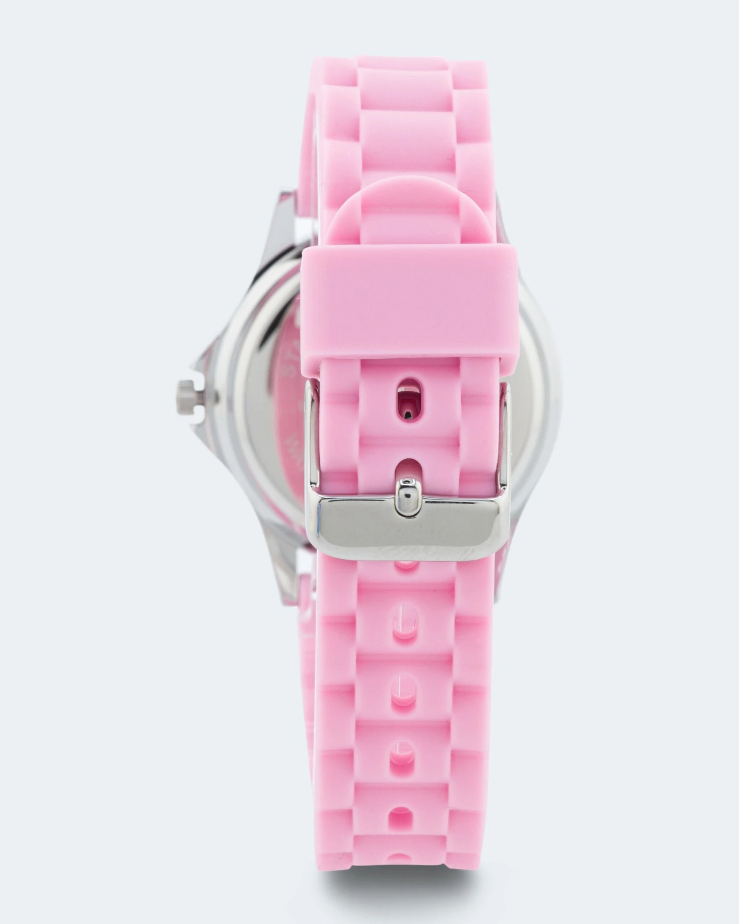 Natürlich harmoniert das Zifferblatt mit Glitzerstaub perfekt mit den Farben des Silikonbandes. Für eine glamouröse Ausstrahlung ist es mit 12 Kristallen auf den Stundenpositionen und dem Helena Vera Logo unter der 12 versehen. Stunden-, Minuten- und Sekundenzeiger in Legierungsfarbe runden das stilvolle Design wunderbar ab.
