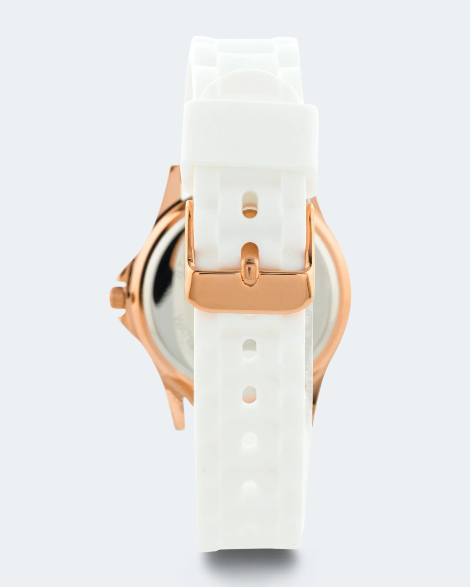 Gehäuse und Zeiger der Helena Vera Uhr sind mit einer Farb-Beschichtung versehen. In welcher Variante passt die Uhr am besten zur Ihnen und Ihrer Garderobe – blau, gelb, grün, rosa oder weiß? Das unempfindliche Silikonband lässt sich bequem mit einer Dornschließe einstellen.