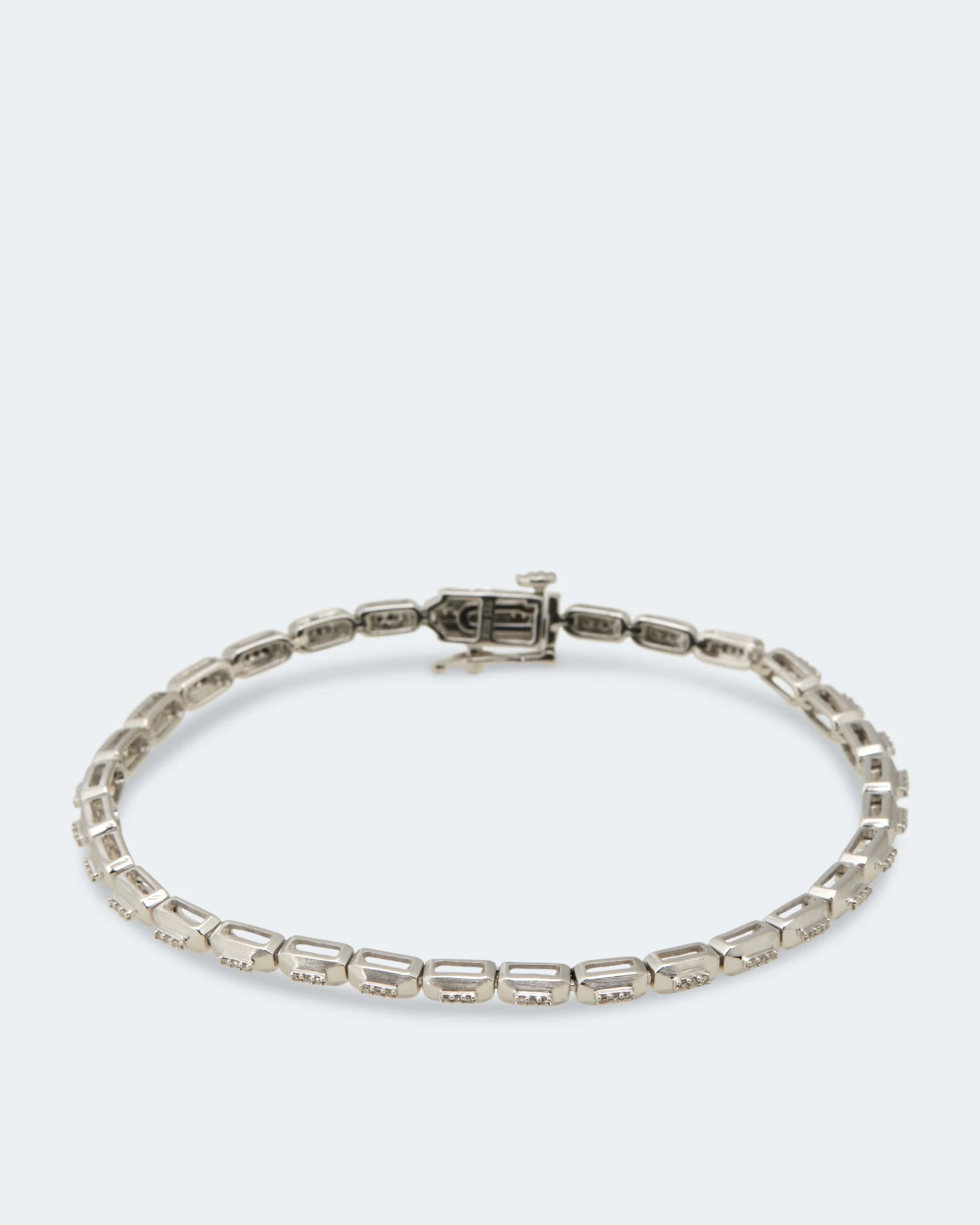 Elegant, glanzvoll und bezaubernd im Design – so präsentiert sich dieses bildschöne Armband aus der Schmuckkollektion von Diajeune. Das exklusive Schmuckstück verbindet den feinen Glanz von 925er Sterlingsilber mit dem herrlichen Funkeln von weißen Diamanten. Finden Sie Ihren persönlichen Edelsteintraum und wählen Sie zwischen einer gelbgoldplattierten und einer rhodinierten Legierung. Dabei stehen Ihnen auch zwei Längen zur Wahl. Die Diamanten bestechen durch ihre Schliffgüte und das herrliche Licht, welches auch Ihr Outfit im Nu aufwerten wird.