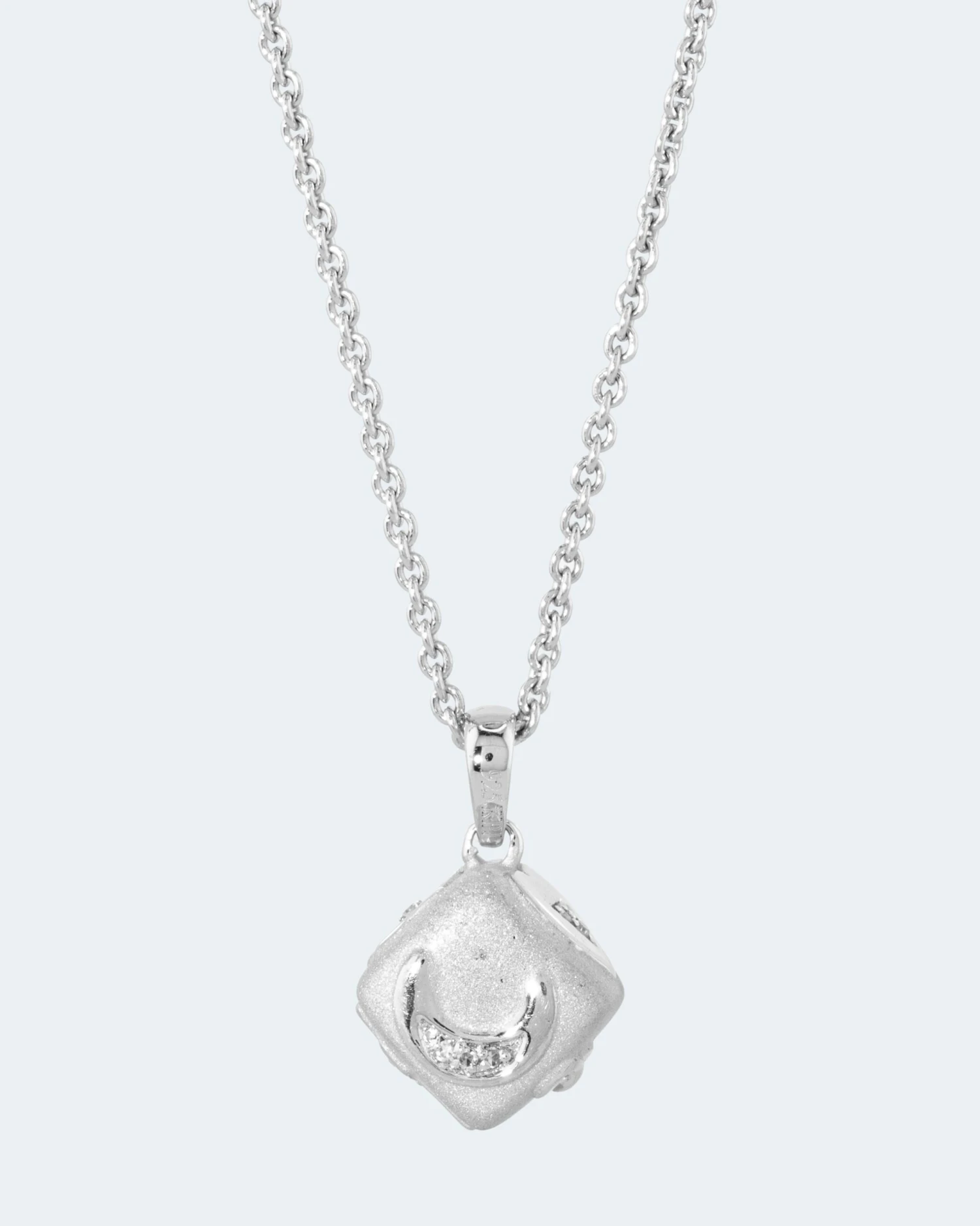 Alles – außer alltäglich: Dieses bildschöne Ensemble aus Anhänger und Ankerkette besticht durch das fantasievolle Design. Der Anhänger ist in Würfelform gearbeitet und präsentiert auf jeder Seite ein mit Diamanten besetztes Symbol. Elegant und wundervoll verspielt!