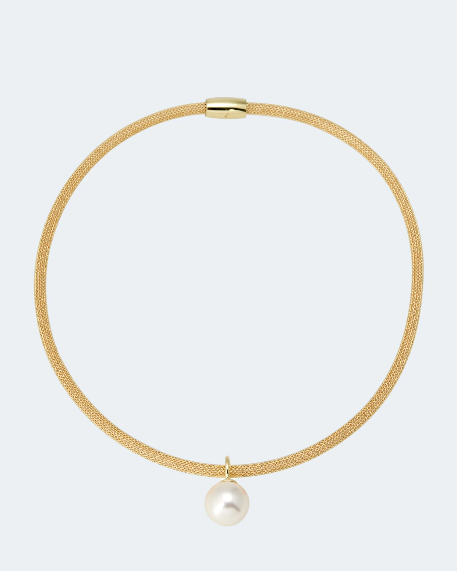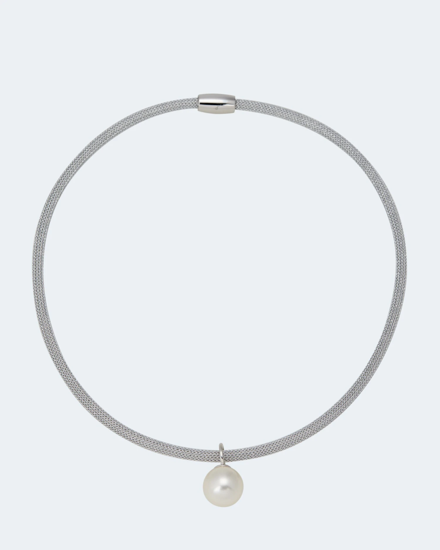 Das schmeichelhafte Collier legt sich weich und elegant um Ihren Nacken. Es beeindruckt mit einer großen Muschelkernperle in klaren Farben. Insgesamt setzt das Ensemble auf Kontraste. Während das Collier aus einem feinen Geflecht besteht, schimmert die 14 mm große Perle glatt und ebenmäßig. Dank der praktischen Magnetschließe können Sie das attraktive Geschmeide ganz einfach an- und ablegen – und vor allem zu den unterschiedlichsten Styles und Outfits tragen. Die schimmernde Muschelkernperle und das filigrane Collier sind jedenfalls immer ein Blickfang.