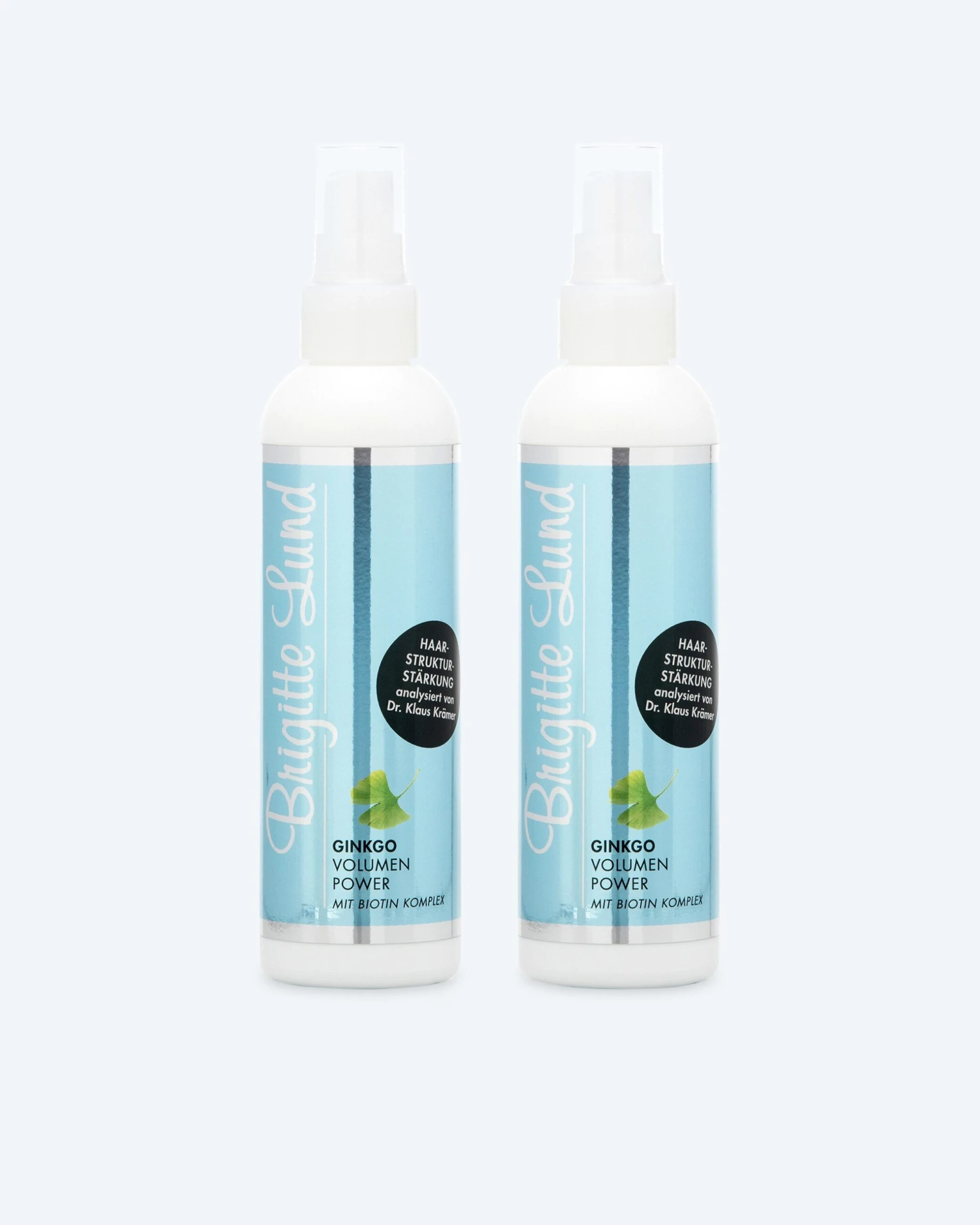 Brigitte Lund Ginkgo Volumen Power mit Biotin Komplex und hohem Anteil an Aminosäuren, Proteinen und Mineralstoffen ummantelt das Haar, sodass die Sprungkraft wieder hergestellt wird.