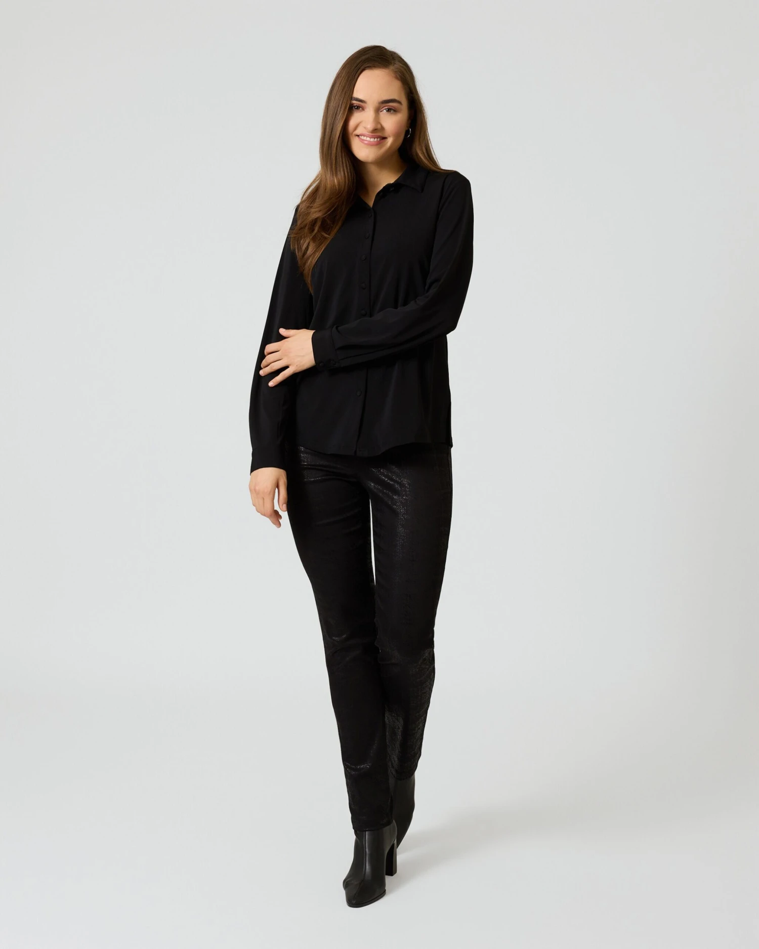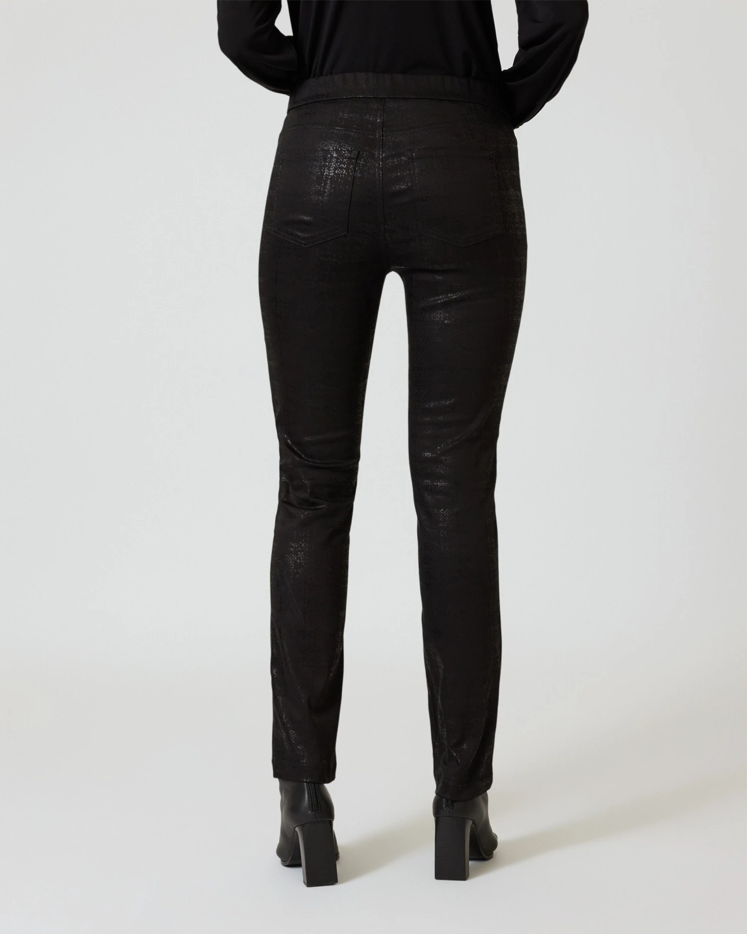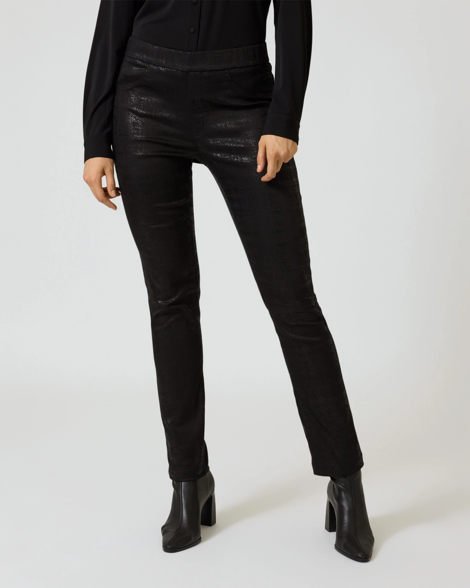 Mit diesem Hosen-Allrounder aus der aktuellen Judith Williams Kollektion werden Sie auf Partys, im Club und auf anderen Abendveranstaltungen zum mondänen Trendsetter. Die schwarze Röhre mit Glanzeffekt zeigt einen dezenten Allover-Print, der raffinierte Glamour-Akzente setzt. Mit einem Dehnbund auf Nabelhöhe überzeugt Ihre neue Hose im 4-Pocket-Stil außerdem mit einem top Tragekomfort. Mehr kann Mode nicht bieten.