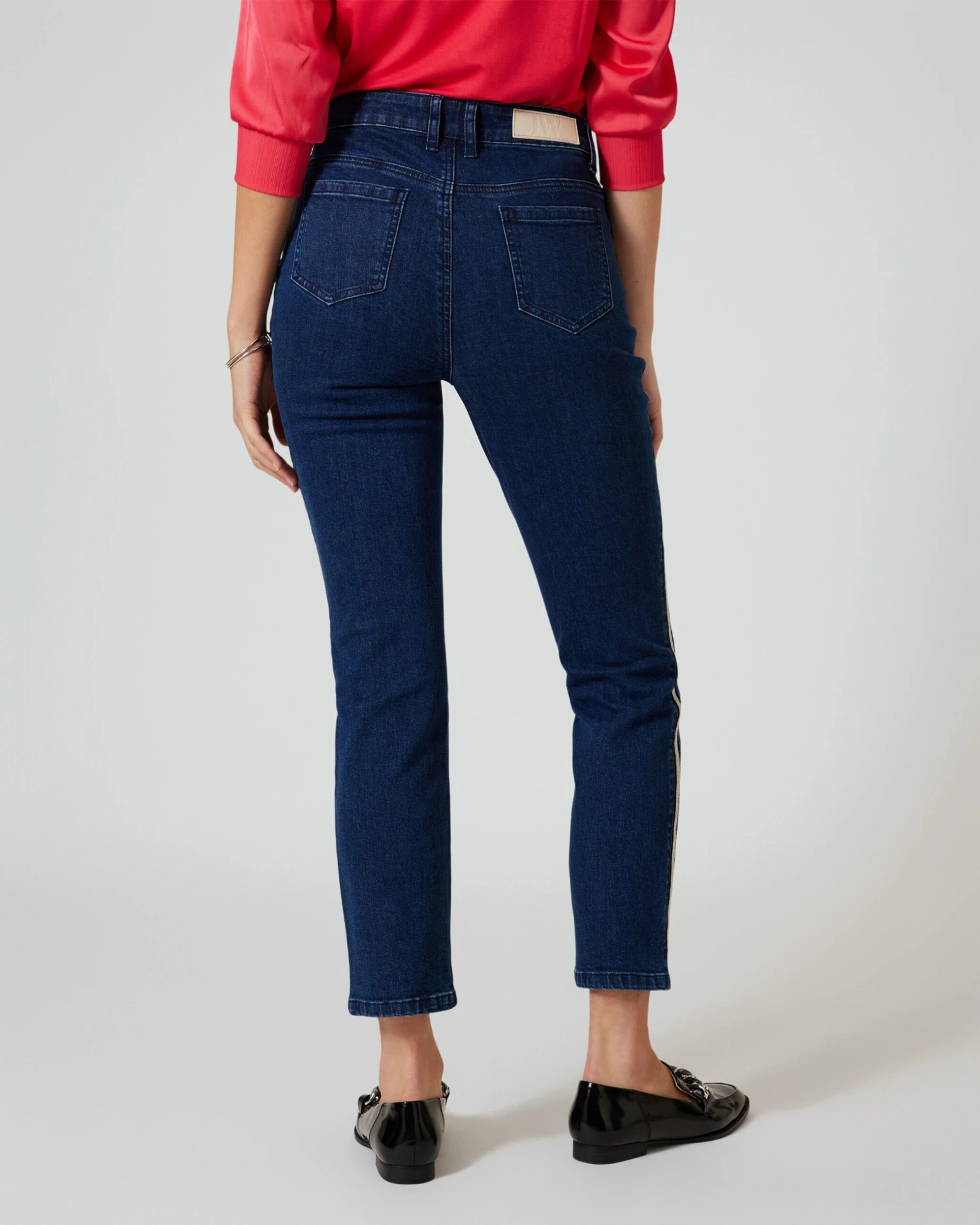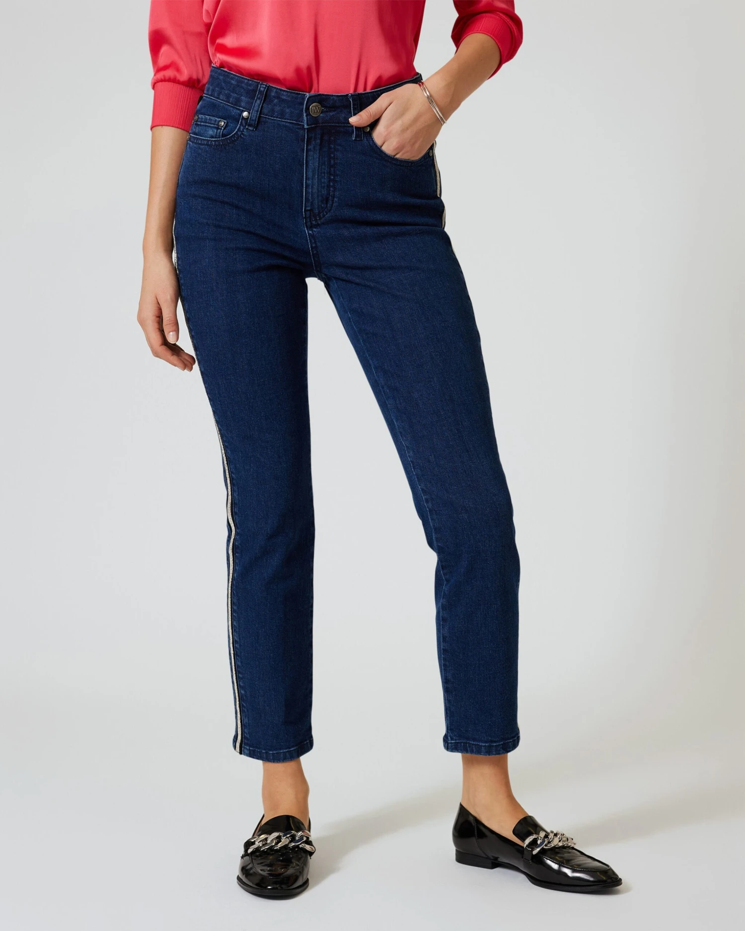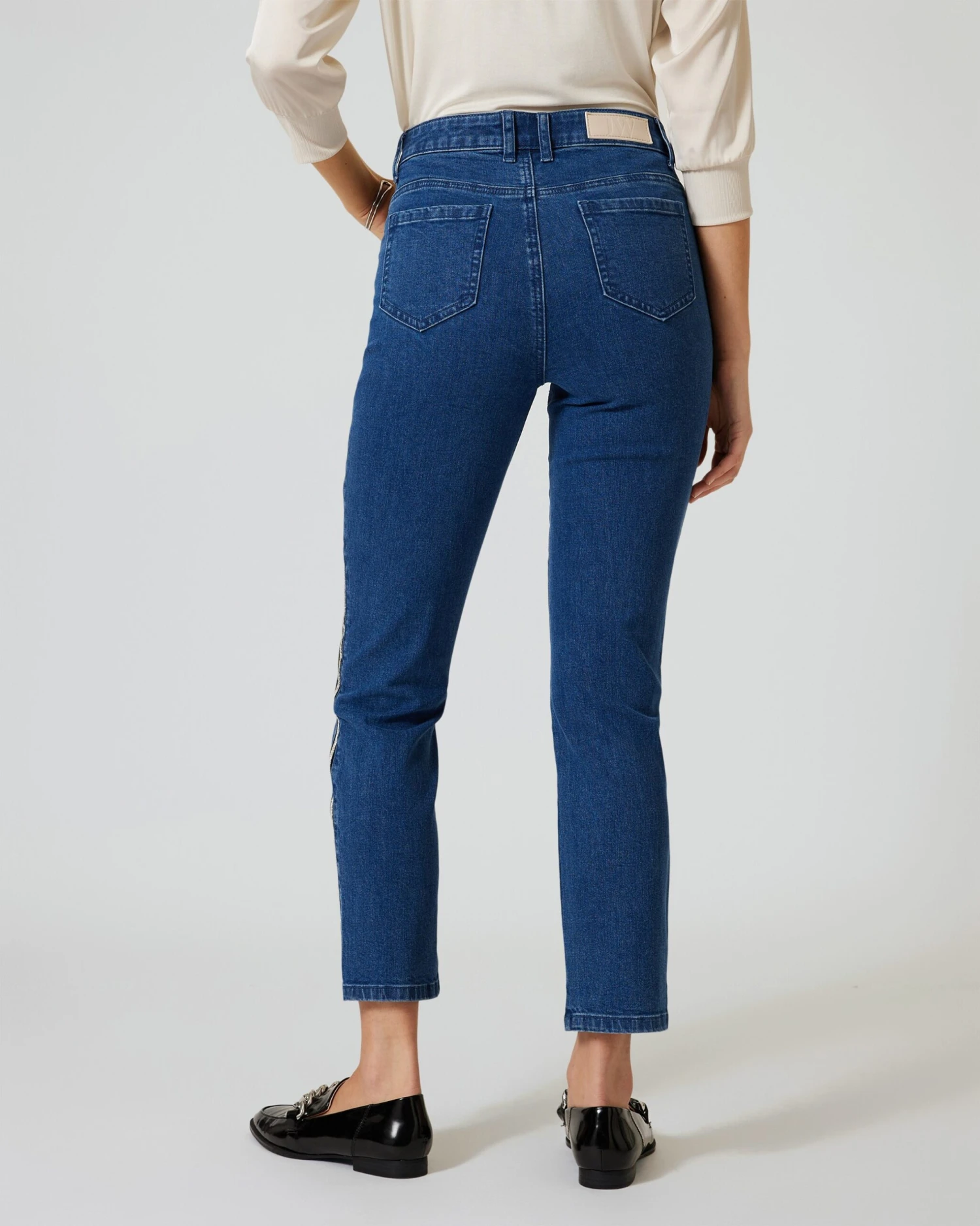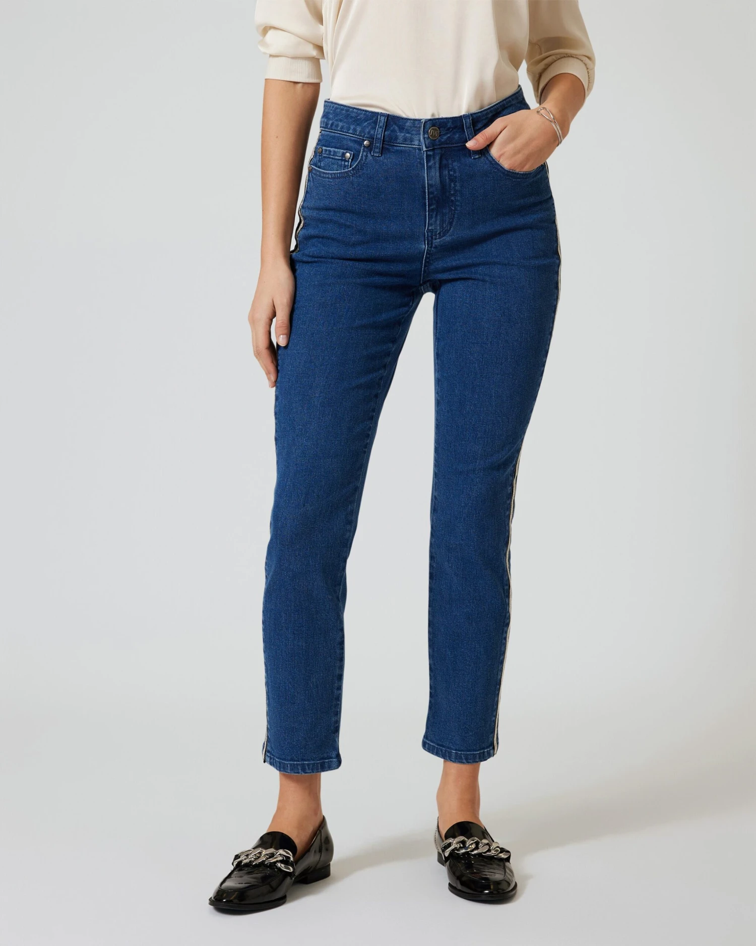 Diese top-schicke Hose aus der aktuellen Kollektion von Judith Williams könnte schon bald Ihr Every-Day-Begleiter werden. Der angesagte Denim-Style ist hier kombiniert mit einer lässigen 9/8-Beinlänge und optisch streckenden Galonstreifen an den Seiten. Kleine Details, die dem kombistarken Basic-Look das gewisse Etwas verleihen.