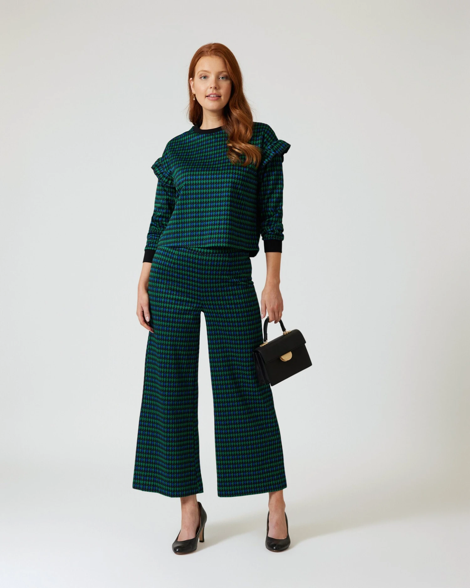 Das Karomuster, eigentlich ein Mode-Klassiker mit langer Geschichte, kommt hier in einem klaren, zeitgemäßen und mehrfarbigen Design mit einem Fokus auf Petrolblau daher. Die Schlupfhose ist extra weit im Marlene-Stil und mit Gummibund gearbeitet. Dadurch sitzt sie immer perfekt, nichts scheuert oder zwickt. Kombinieren Sie die Hose nach Lust und Laune – oder Sie gönnen sich direkt das passende Shirt dazu (Bestellnr. 460412).