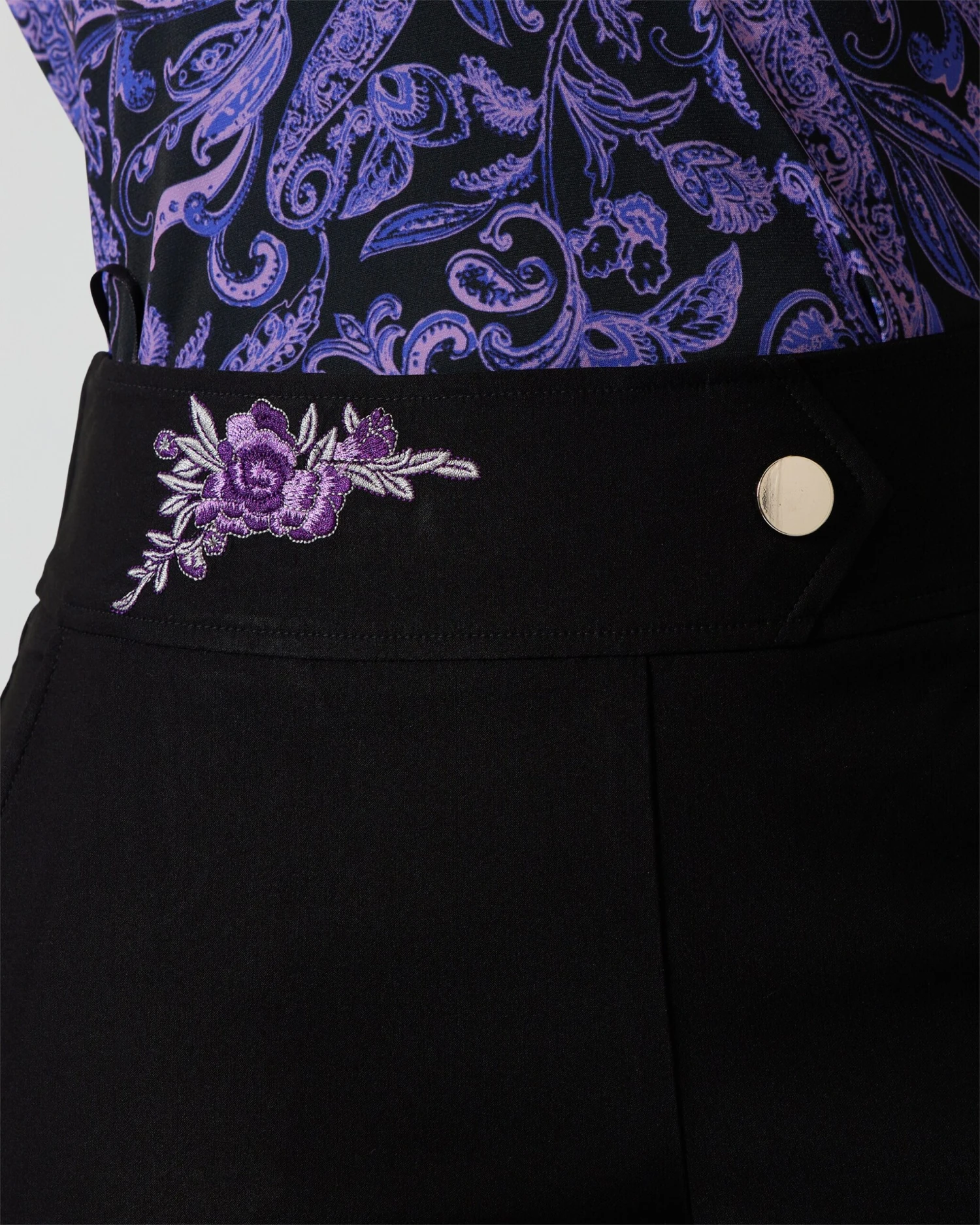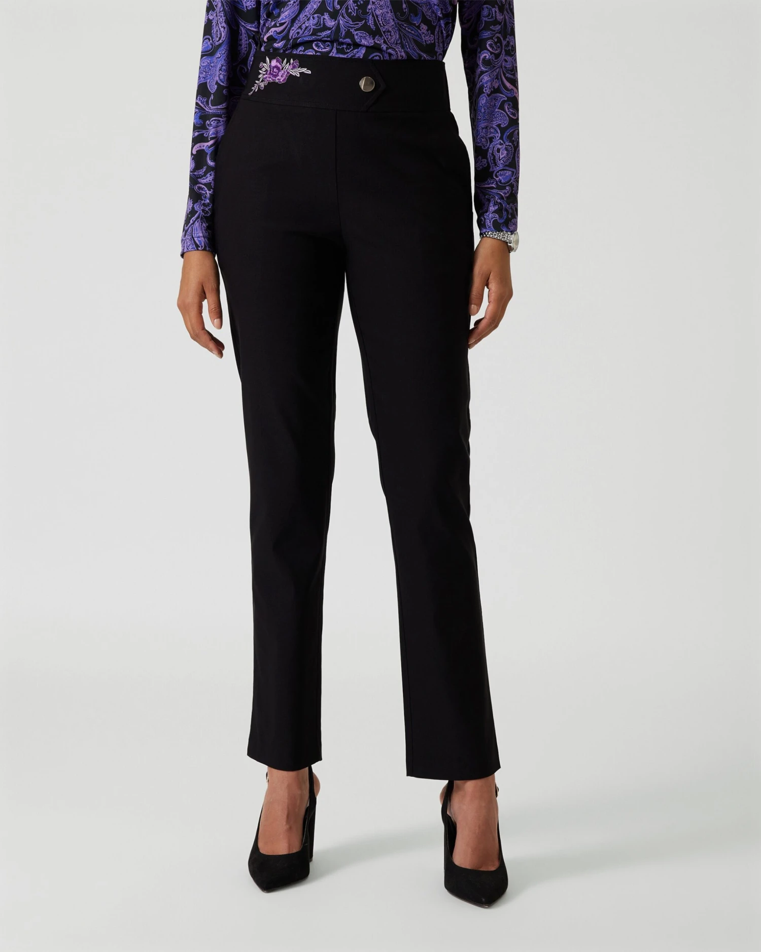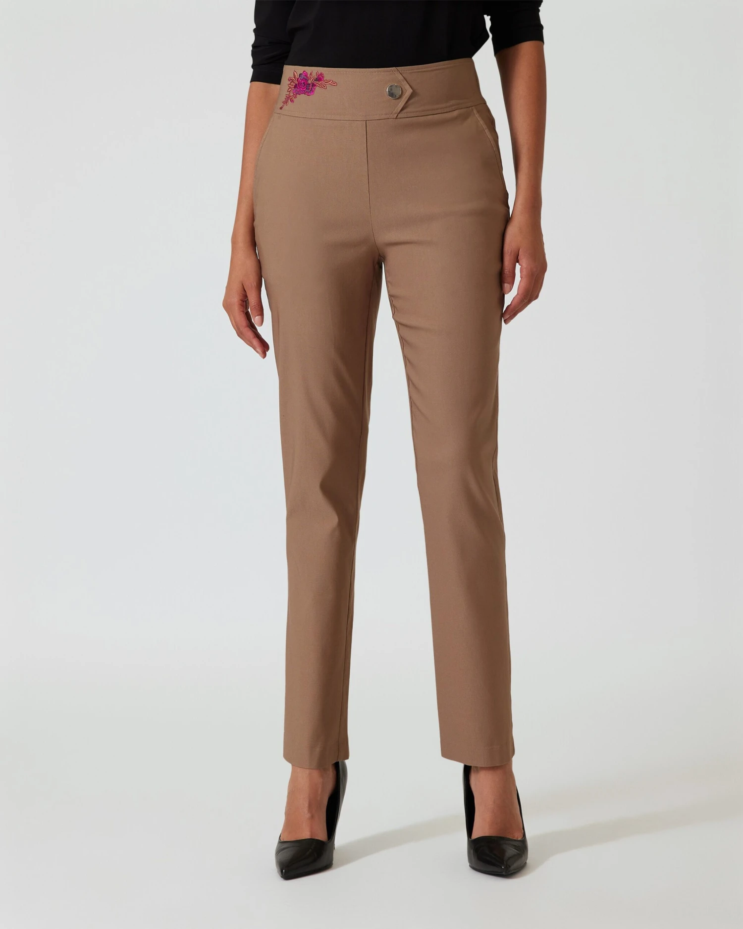 Diese Hose vereint Stil und Bequemlichkeit auf eine einzigartige Weise. Die bequeme Schlupfform ermöglicht einen mühelosen Einstieg und bietet den ganzen Tag über höchsten Tragekomfort. Der breite Bund mit Zierknopf sorgt für eine edle Note. Die florale Stickerei am Bund verzaubert mit ihrer detailverliebten Schönheit und verleiht der Hose einen besonderen Charme. Mit ihrem geraden Bein schmeichelt sie Ihrer Silhouette und lässt Sie stets gut aussehen – egal zu welchem Anlass. Freien Sie sich auf zeitlose Eleganz gepaart mit einem angenehmen Tragegefühl, das Sie begeistern wird.