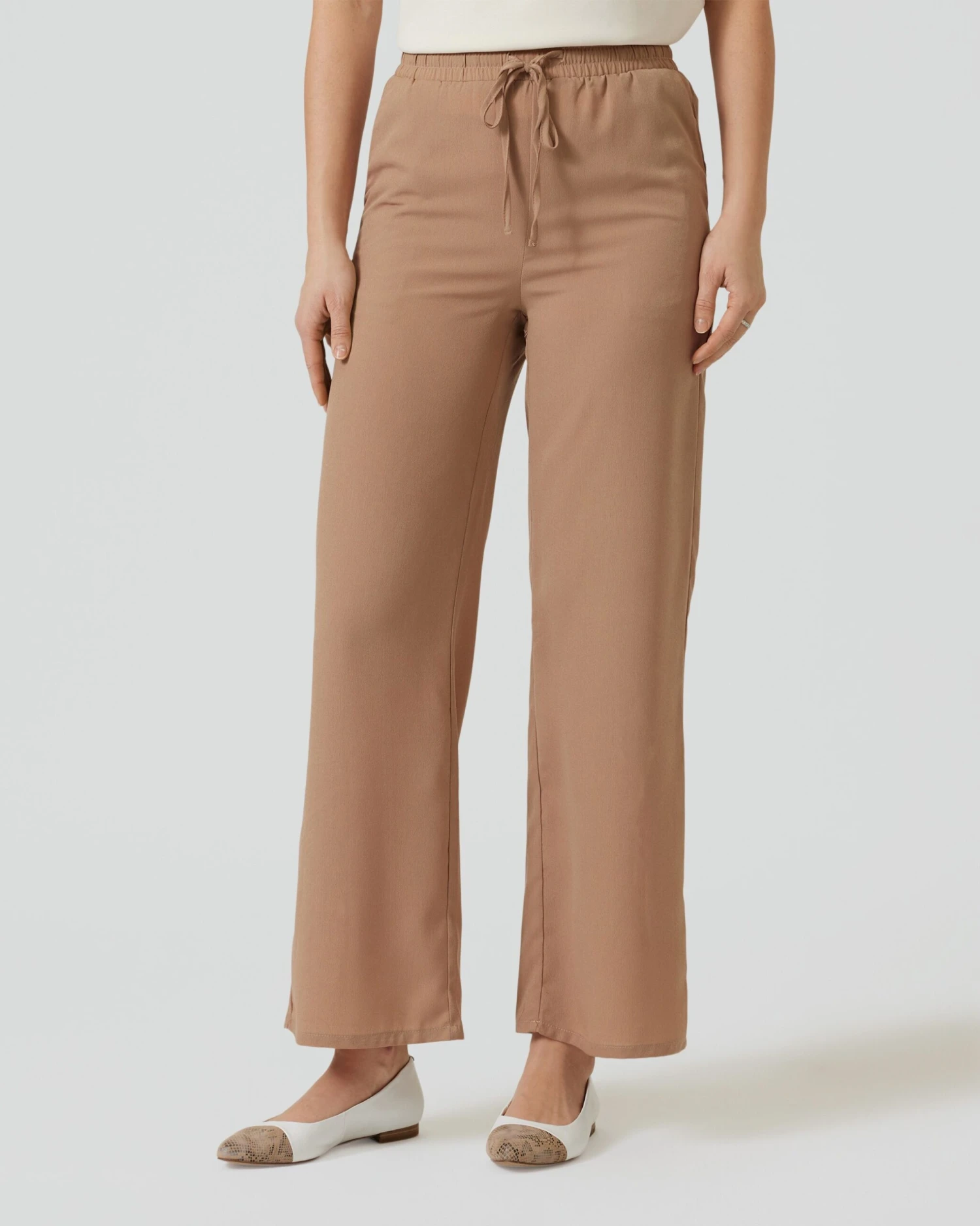 Die Hose ist weit geschnitten und schwingt angenehm locker um Ihre Beine.