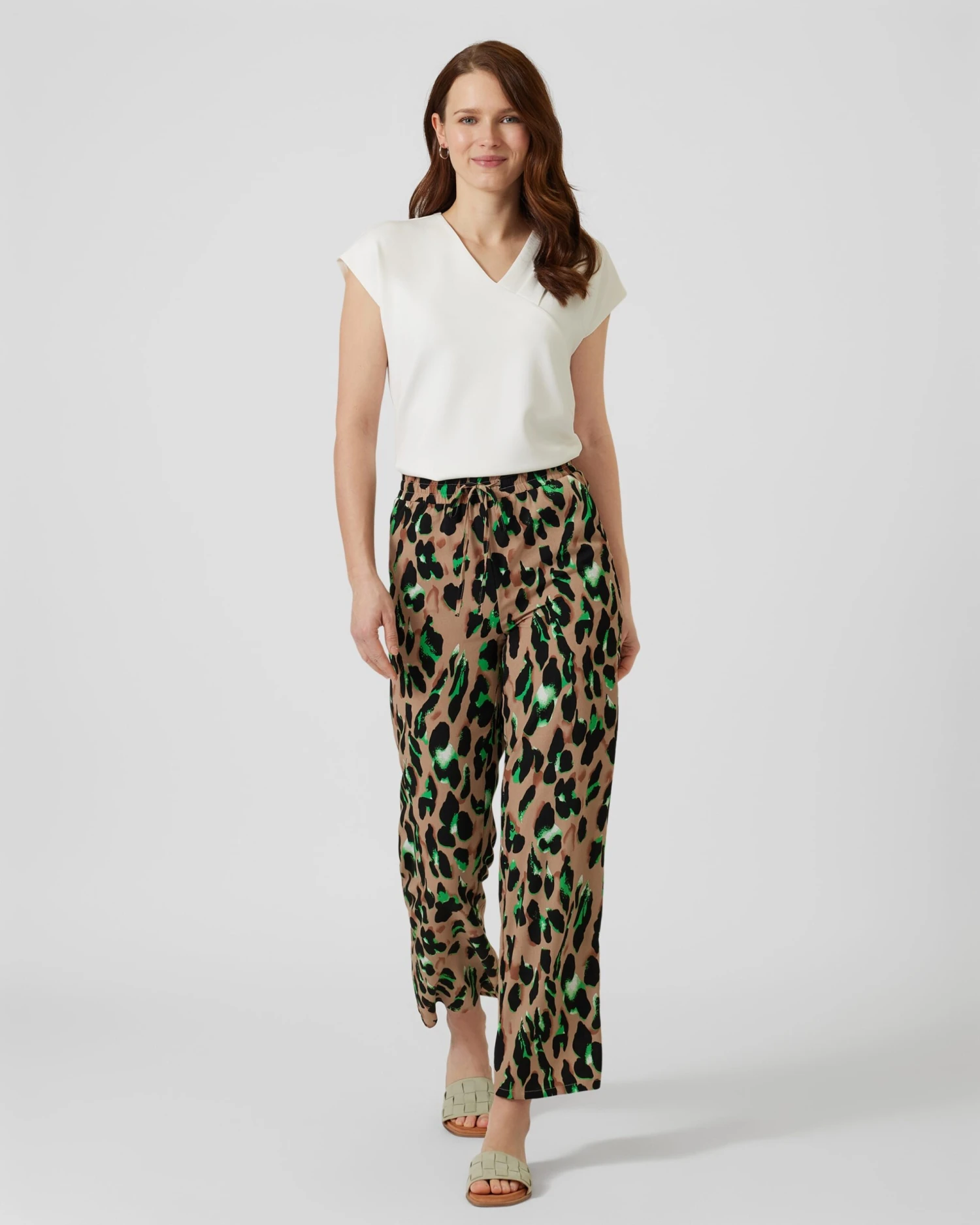 In diese Hose schlüpfen Sie einfach rein und sind ruckzuck top gestylt. Das Fashion-Piece aus der Jana Ina Fashion Kollektion ist im modern gestalteten Leo-Design oder uni in Nougat erhältlich. Ideal für alle Ihre Casual-Styles.