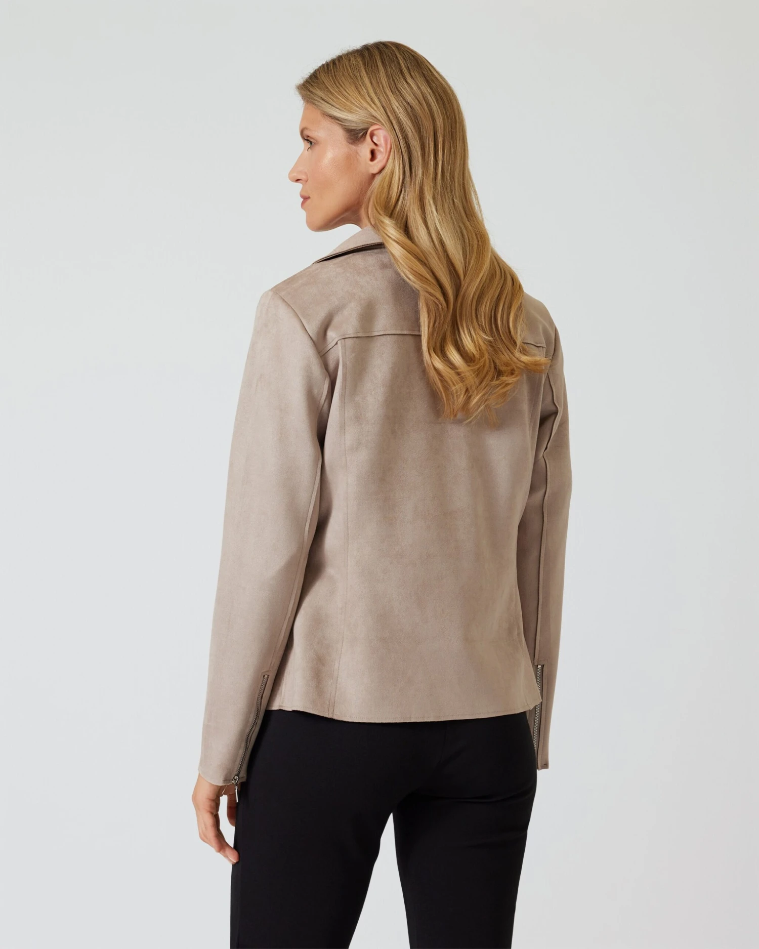 Lederjacken im Biker-Stil sind echte Klassiker, die in jedem gut sortierten Kleiderschrank zu finden sein sollten. Aber es muss nicht immer echtes Leder sein. Für Ihr gutes Gefühl ist diese Maloo Jacke aus weichem und trageangenehmem Velourslederimitat gefertigt. Mode-Details wie der breite Reverskragen mit Deko-Knöpfen, lässige Reißverschluss-Details und verschiedene figurformende Abnäher geben der Jacke den charakteristischen Biker-Look.