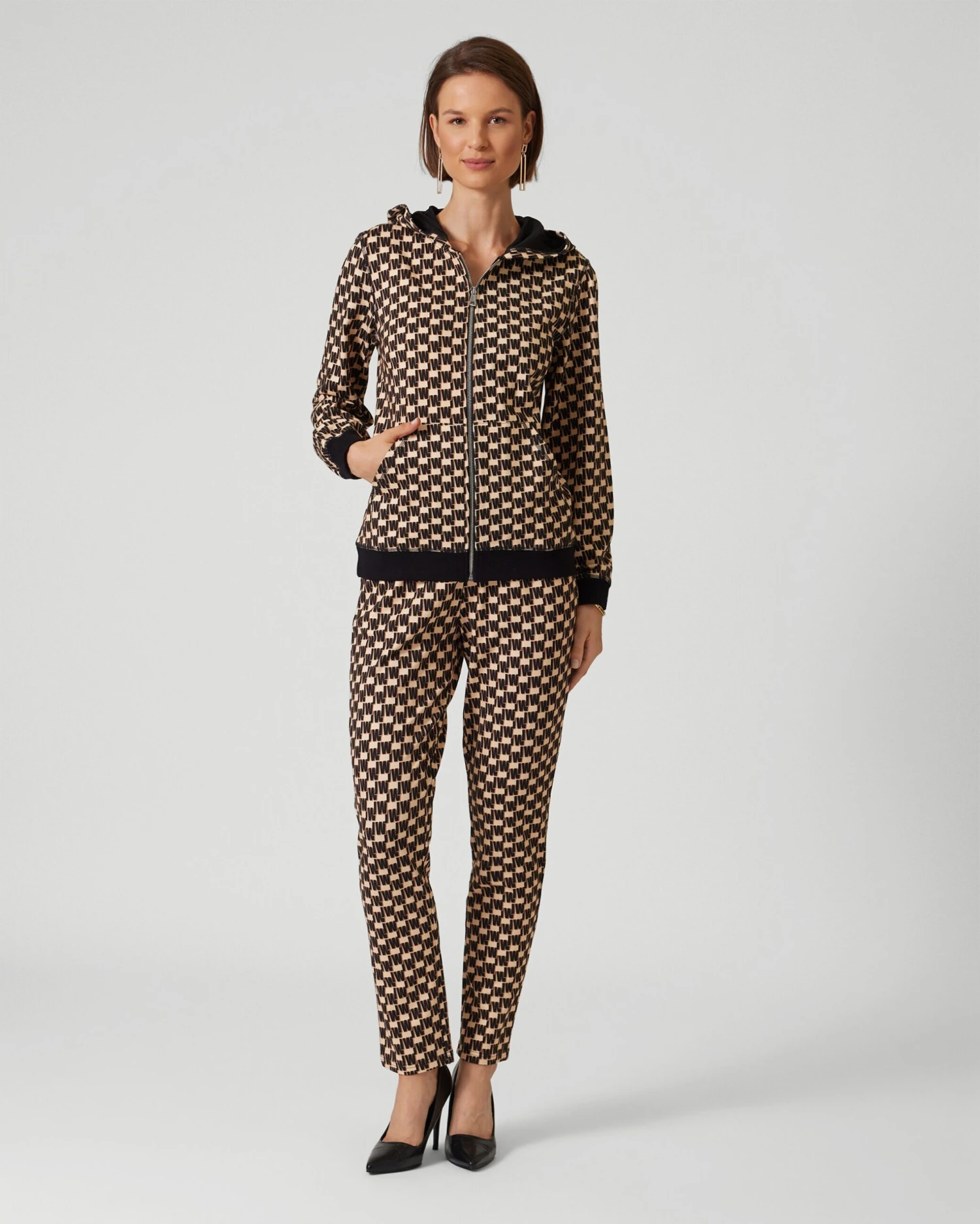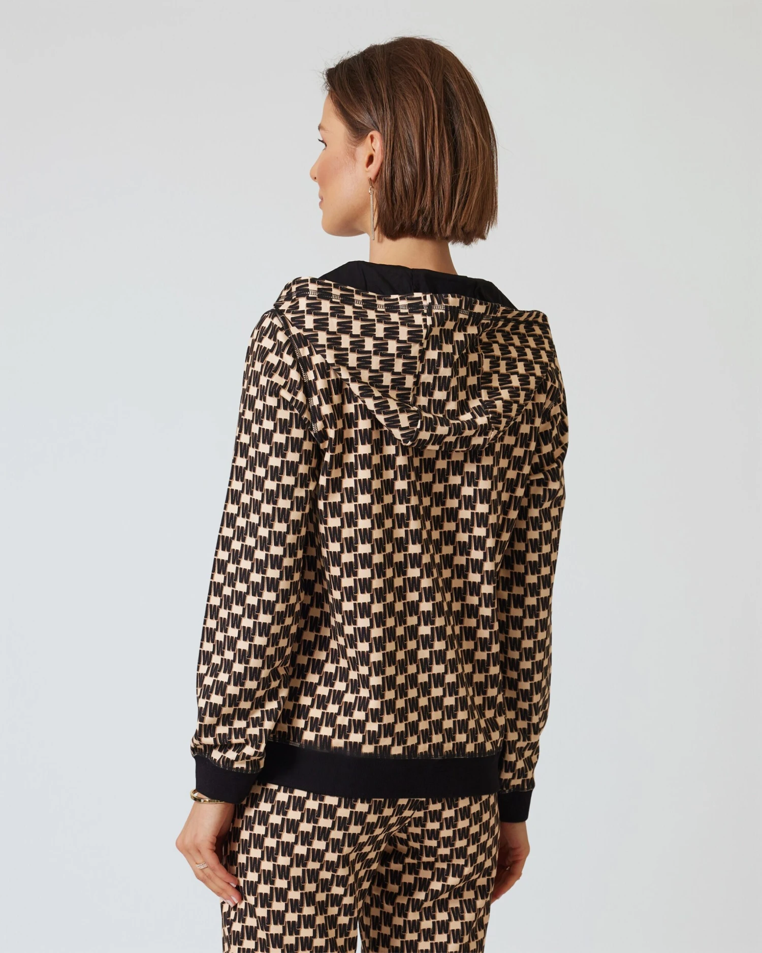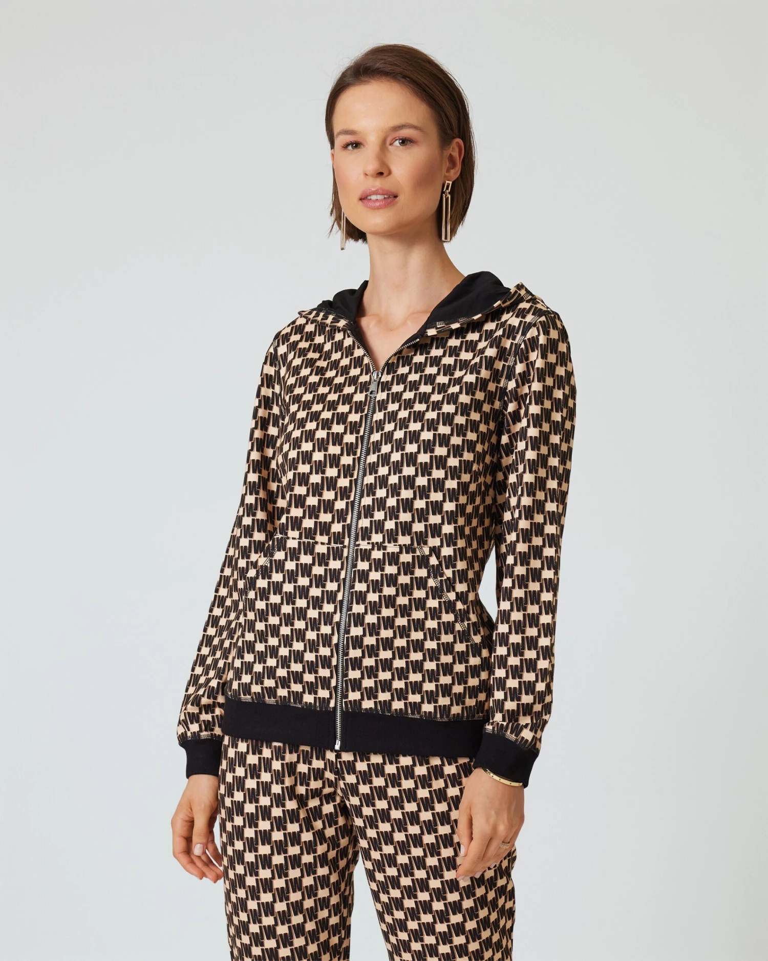 Diese Jacke in feiner Ponte di Roma Qualität wird Sie mit ihrem modischen Design und hohem Tragekomfort begeistern. Die Jacke ist mit einem auffälligen All-over-Logoprint versehen, der für einen trendigen Look sorgt. Das stylische Mehrfarb-Design verleiht der Jacke eine dynamische Optik und macht sie zu einem echten Hingucker. Mit dem praktischen Reißverschluss und der Kapuze können Sie die Jacke ganz nach Ihren Bedürfnissen anpassen. Die seitlichen Eingriffstaschen bieten Ihnen zusätzlichen Stauraum und sind zugleich ein praktisches Detail. Der Rippsaum in Kontrastfarbe verleiht der Jacke einen modernen Twist. Damit eignet sich die Damenjacke ideal für sportliche Aktivitäten oder lässige Freizeit-Outfits.