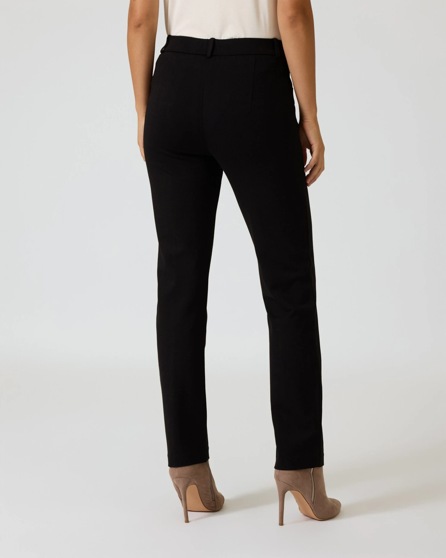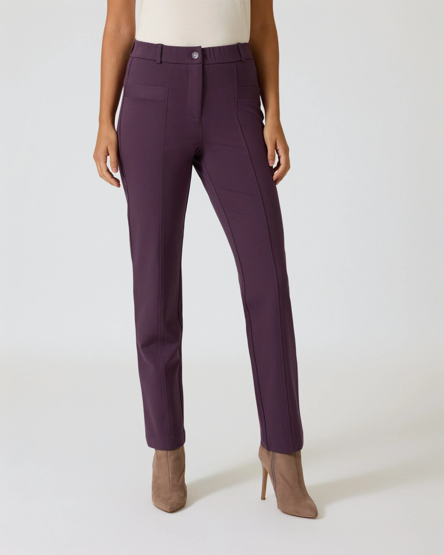 In dieser Hose machen Sie eine tolle Figur. Der gerade Schnitt mit Mittelnaht zaubert lange, schlanke Beine und der breite, elastische Bund mit Gürtelschlaufen sitzt herrlich komfortabel. Verschlossen wird die Hose mit Knopf und Reißverschluss, der Bund ist angesagt auf Nabelhöhe. Dazu gibt es waagrecht augedeutete Taschen mit breiter Ton in Ton-Blende am oberen Ende. Auf Gesäßtaschen wurde verzichtet, sodass nichts aufträgt. Neben all der schönen Optik, ist die Hose dank der soften Ponte di Roma Qualität auch noch superbequem. Und das Beste: Diese Hose können Sie mit allem kombinieren, was Ihr Kleiderschrank hergibt.