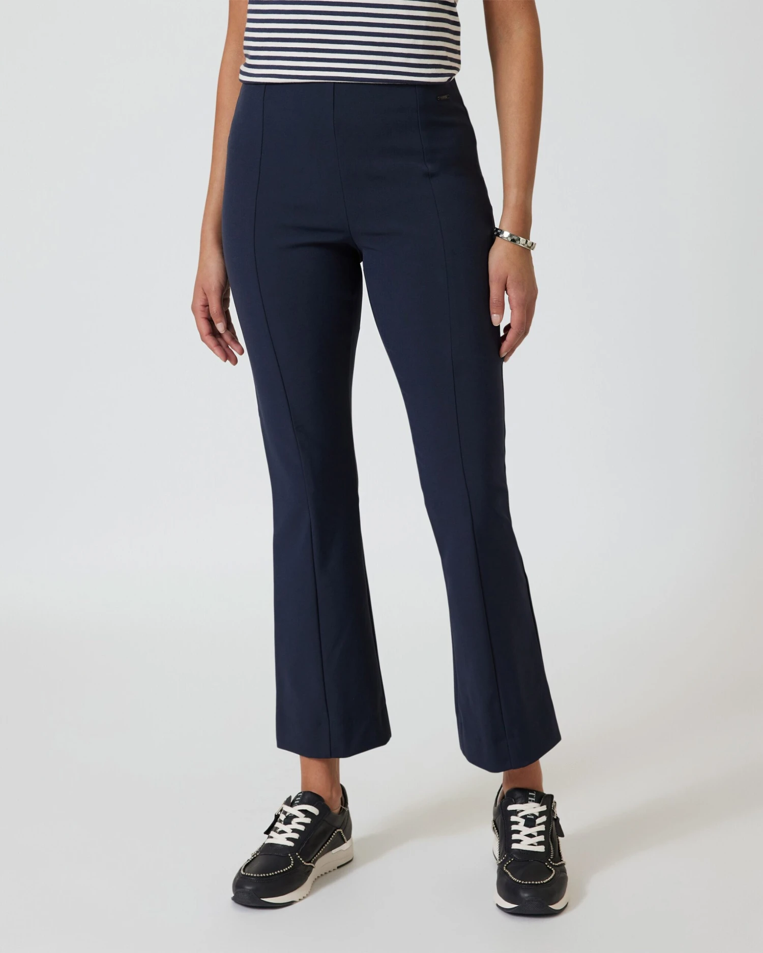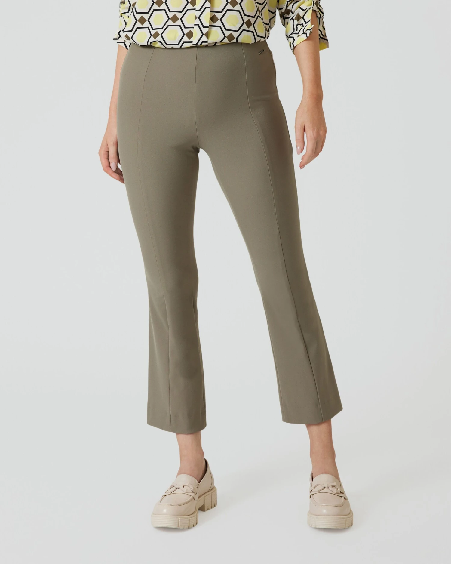 Kick Flare Hosen sind echte Allrounder, die Sie das ganze Jahr über einsetzen können. Das Modell „Tessa“ aus der aktuellen Kollektion von THOM by Thomas Rath punktet zudem mit tollen Kombinationsmöglichkeiten. Als Schlupfhose mit elastischem Bund sitzt dieses Fashion-Piece perfekt, das Stretch-Gewebe bietet zudem einen Slim-fit-Effekt für eine schlanke Silhouette.