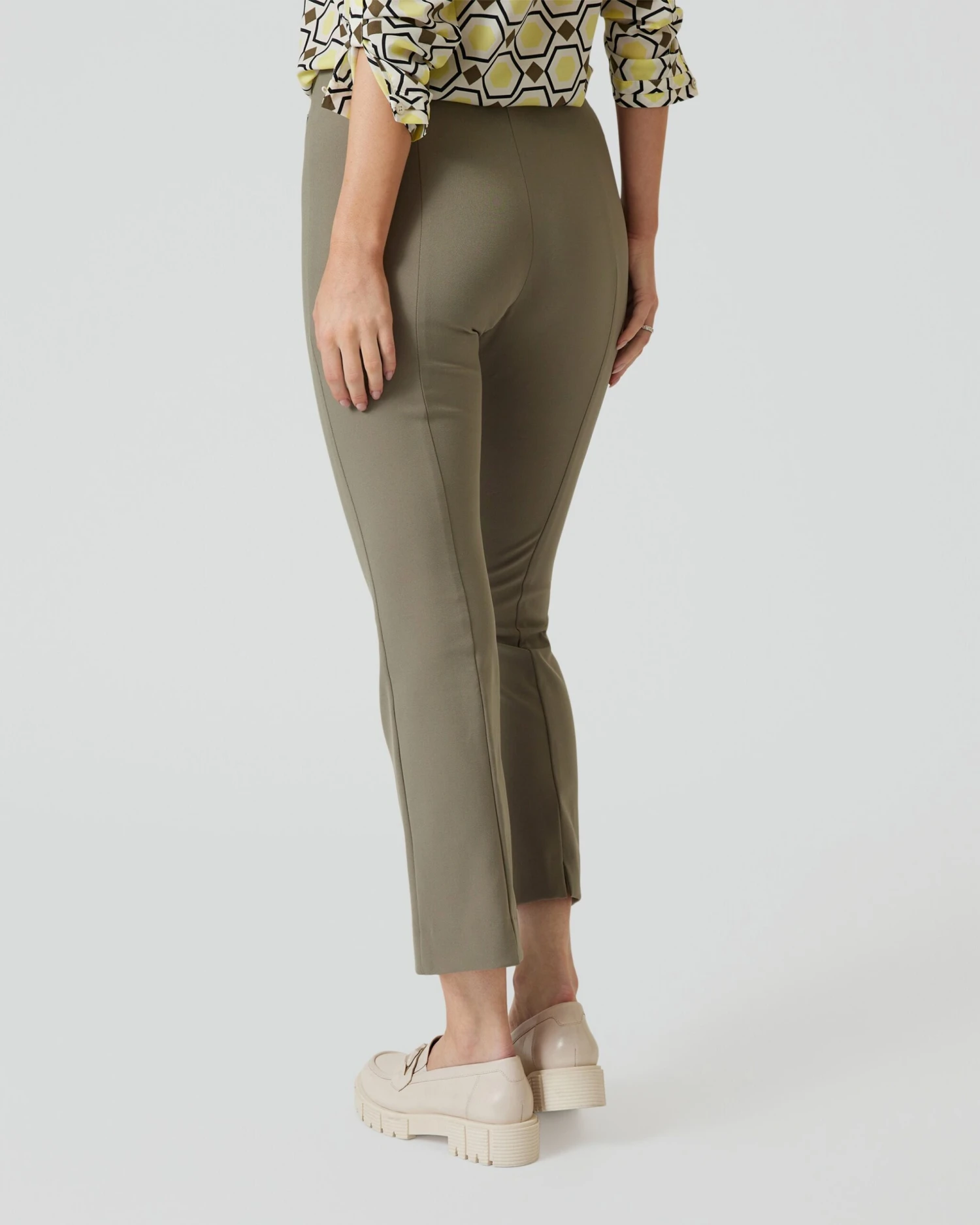 Das Bein ist vorn und hinten mit einer Ziernaht gearbeitet, was zusätzlich streckend wirkt. Ein Schlitz am hinteren Beinabschluss betont den lässigen Look.