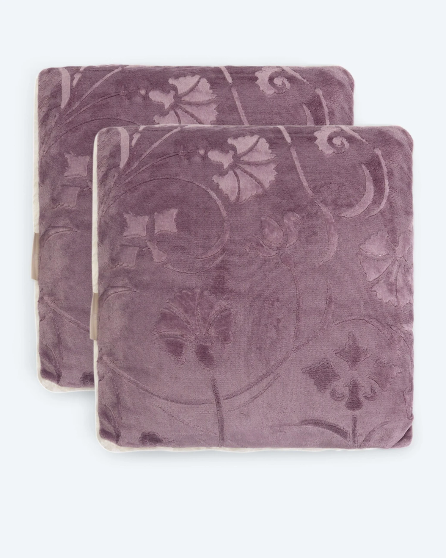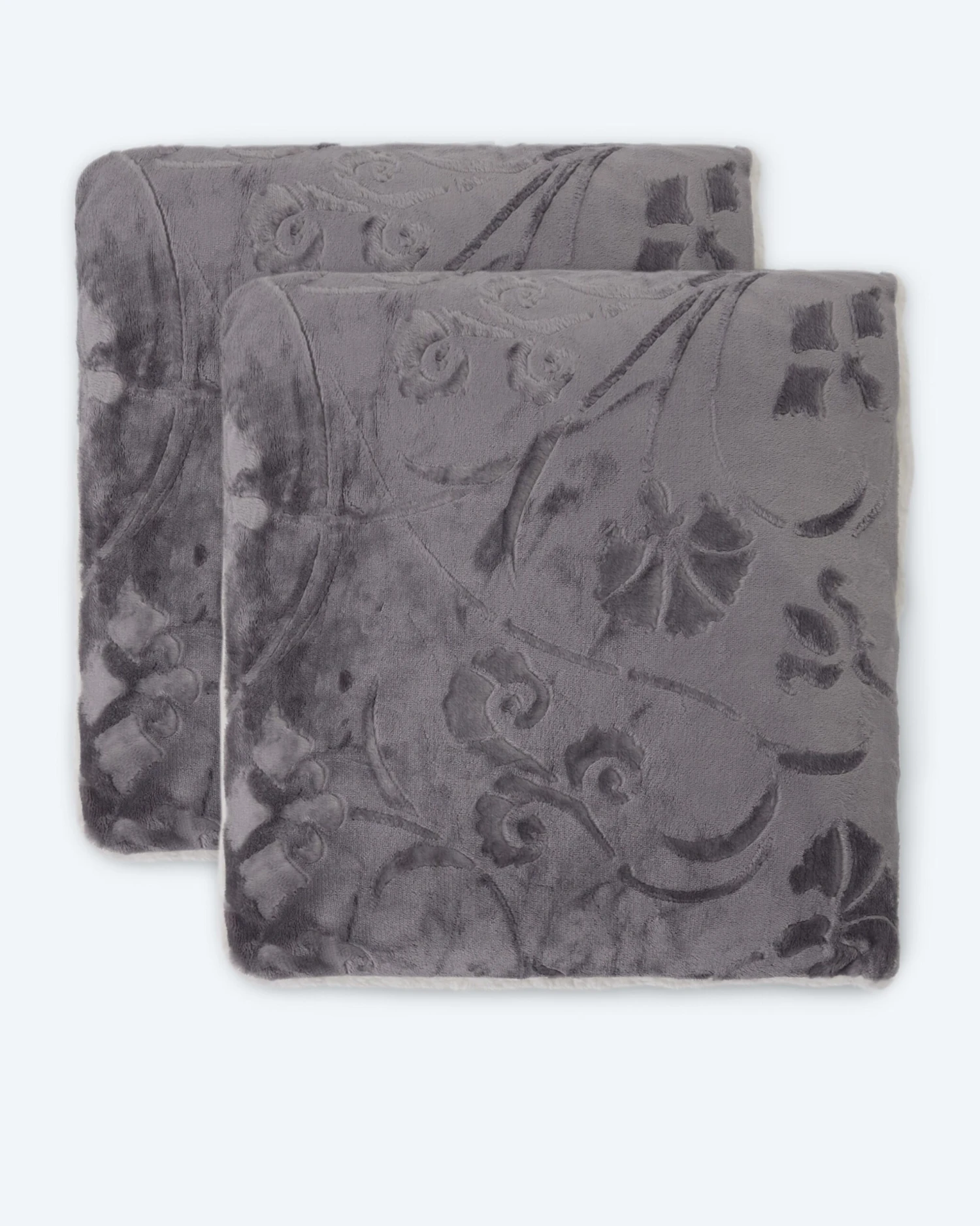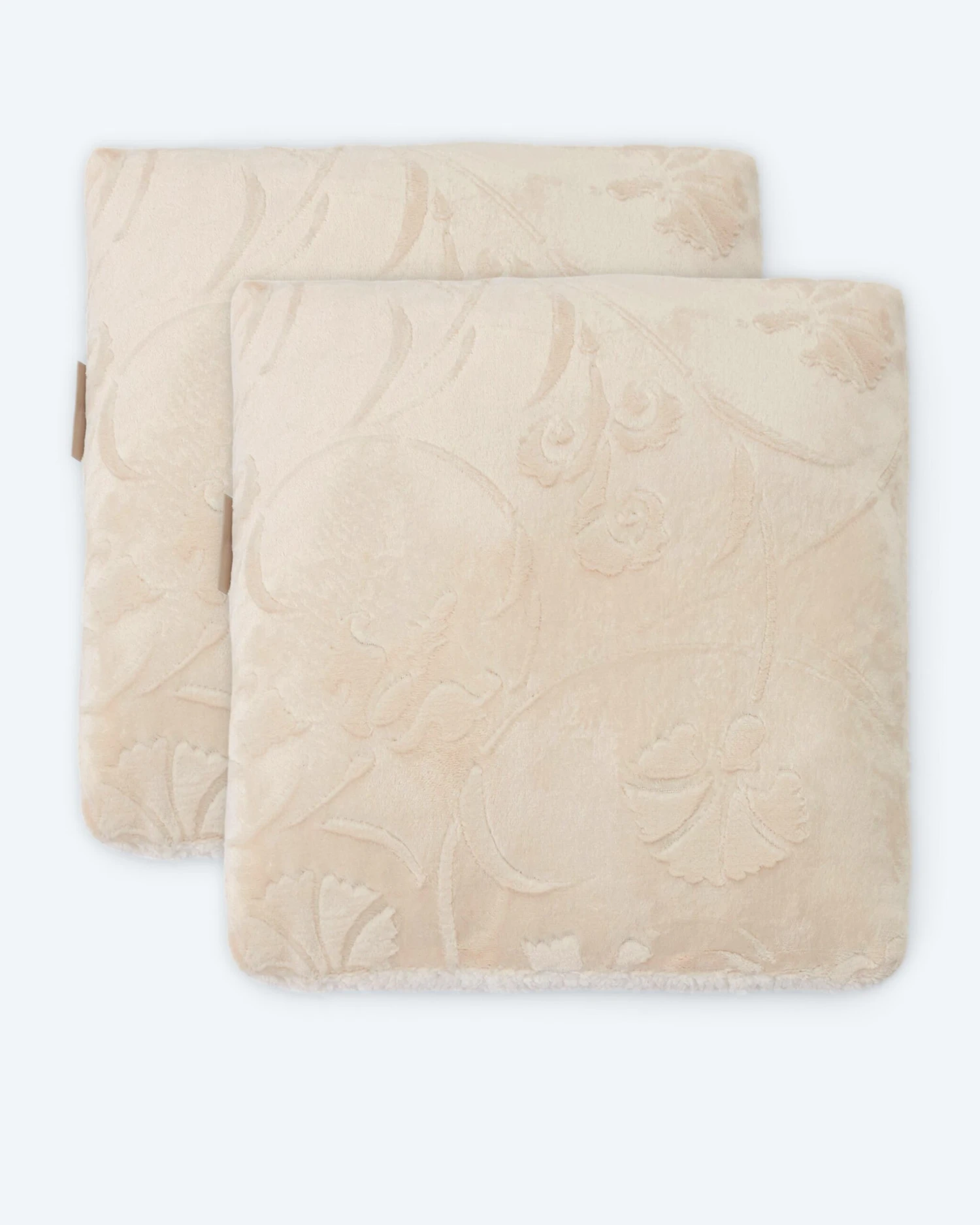 Und sollten Sie doch einmal Lust auf eine andere Optik haben, können Sie die raffinierten Kissen einfach umdrehen: Die Rückseite zeigt ein stilvolles Ranken-Design in Cashma Plüsch.