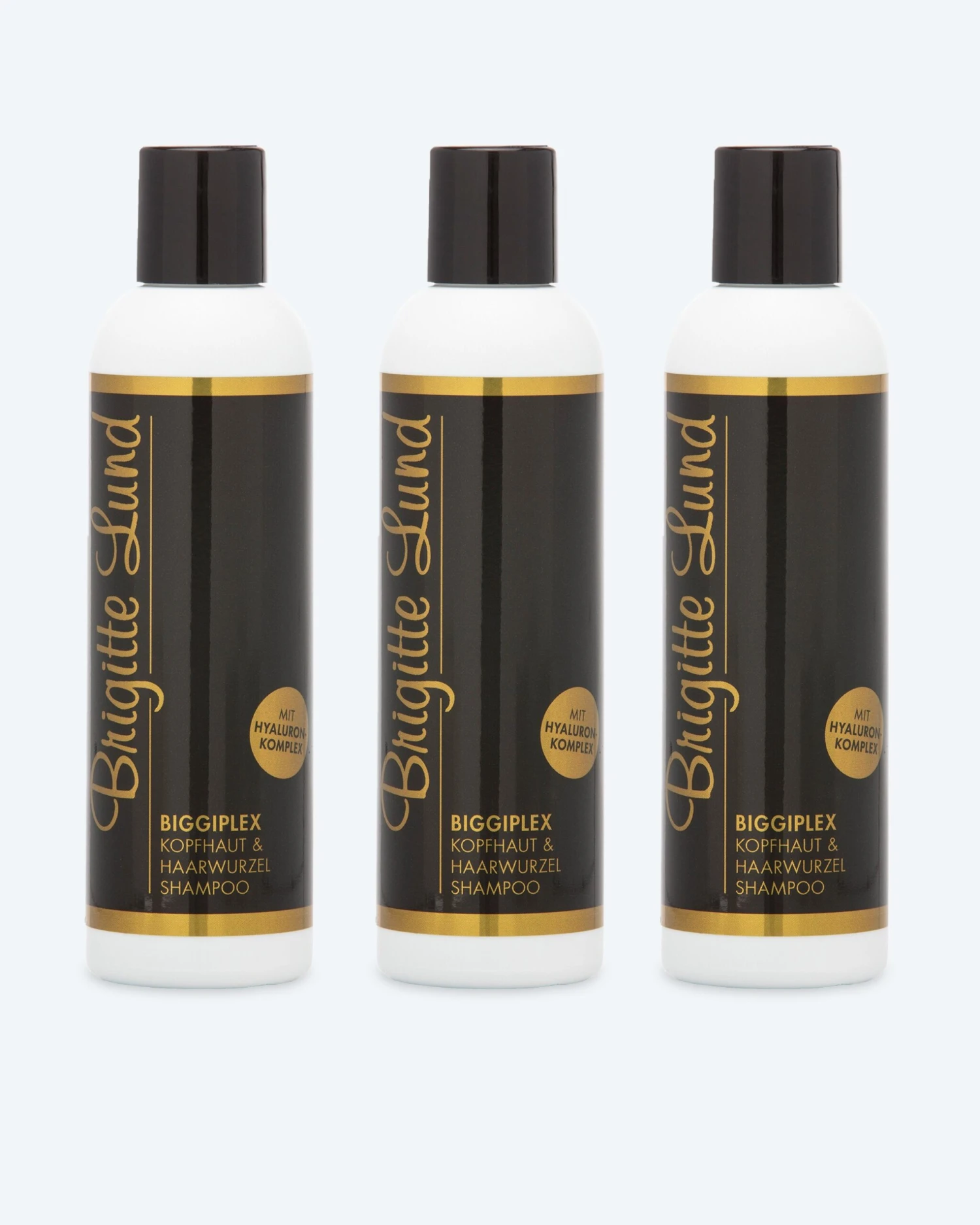 | Lieferumfang: | 3x 200 ml Brigitte Lund BIGGIPLEX Kopfhaut & Haarwurzel Shampoo mit Hyaluron Komplex | |