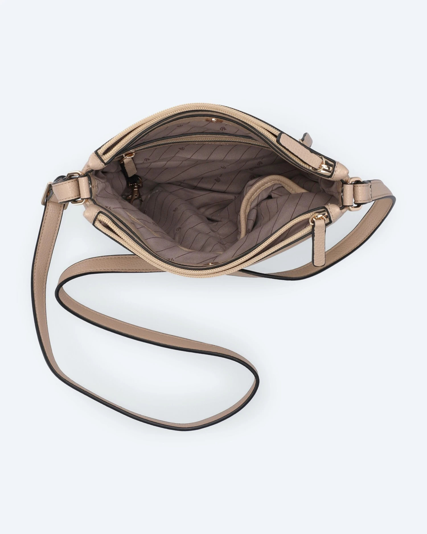 Genügend Stauraum für Ihre Siebensachen, mit vielen Fächern gut strukturiert und dabei auch noch ein eleganter Hingucker – mit dieser Umhängetasche im angesagten Crossbody-Stil machen Sie alles richtig!