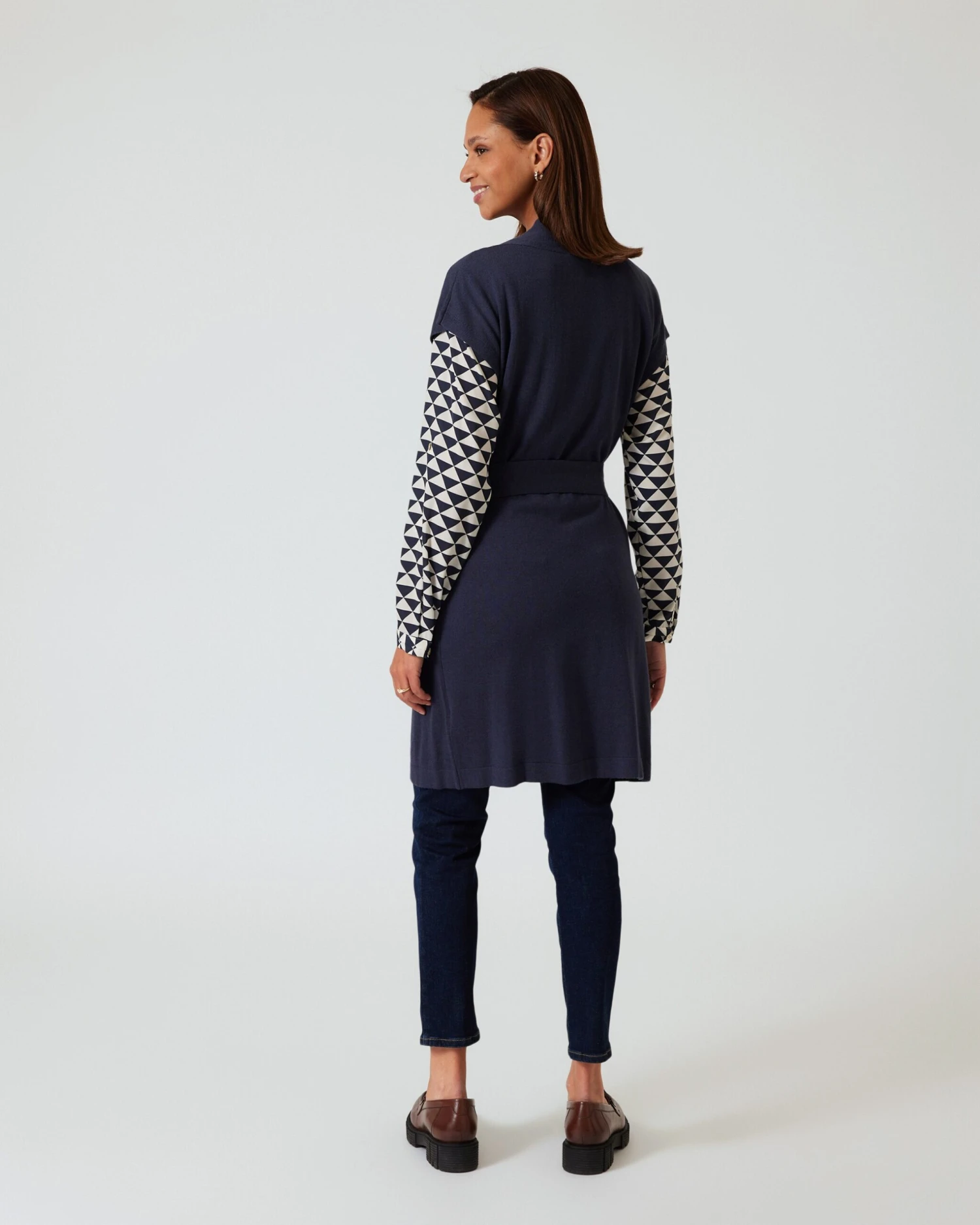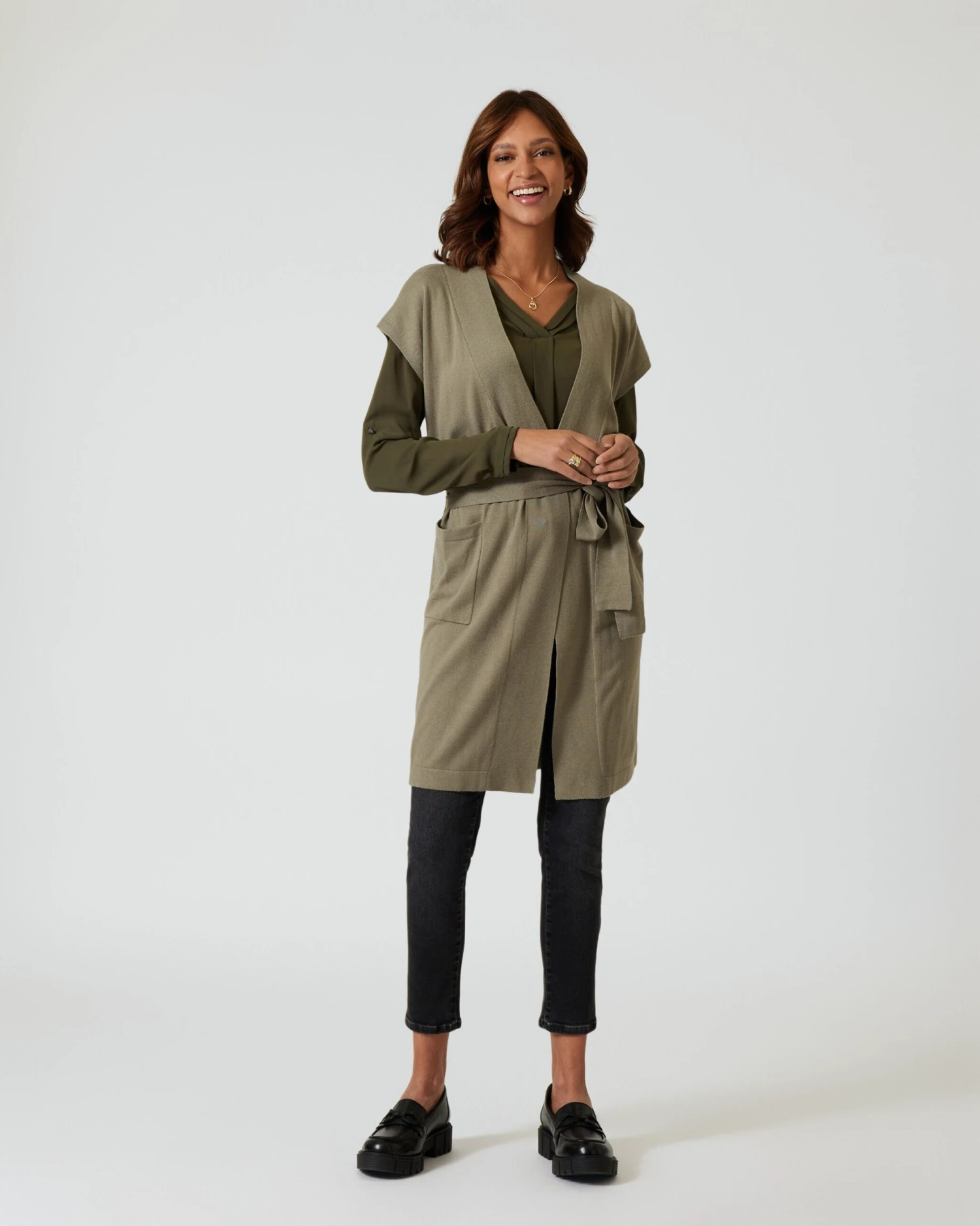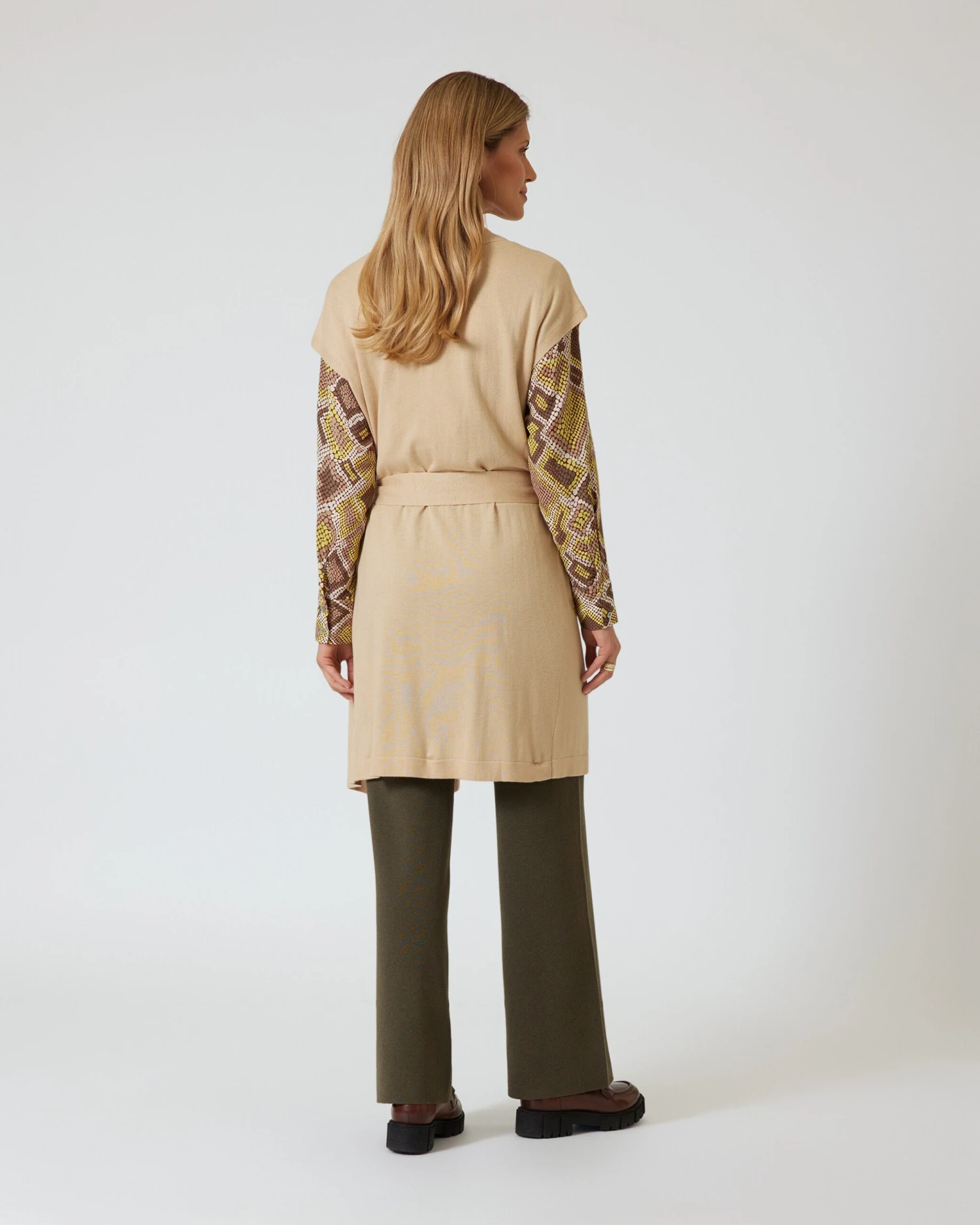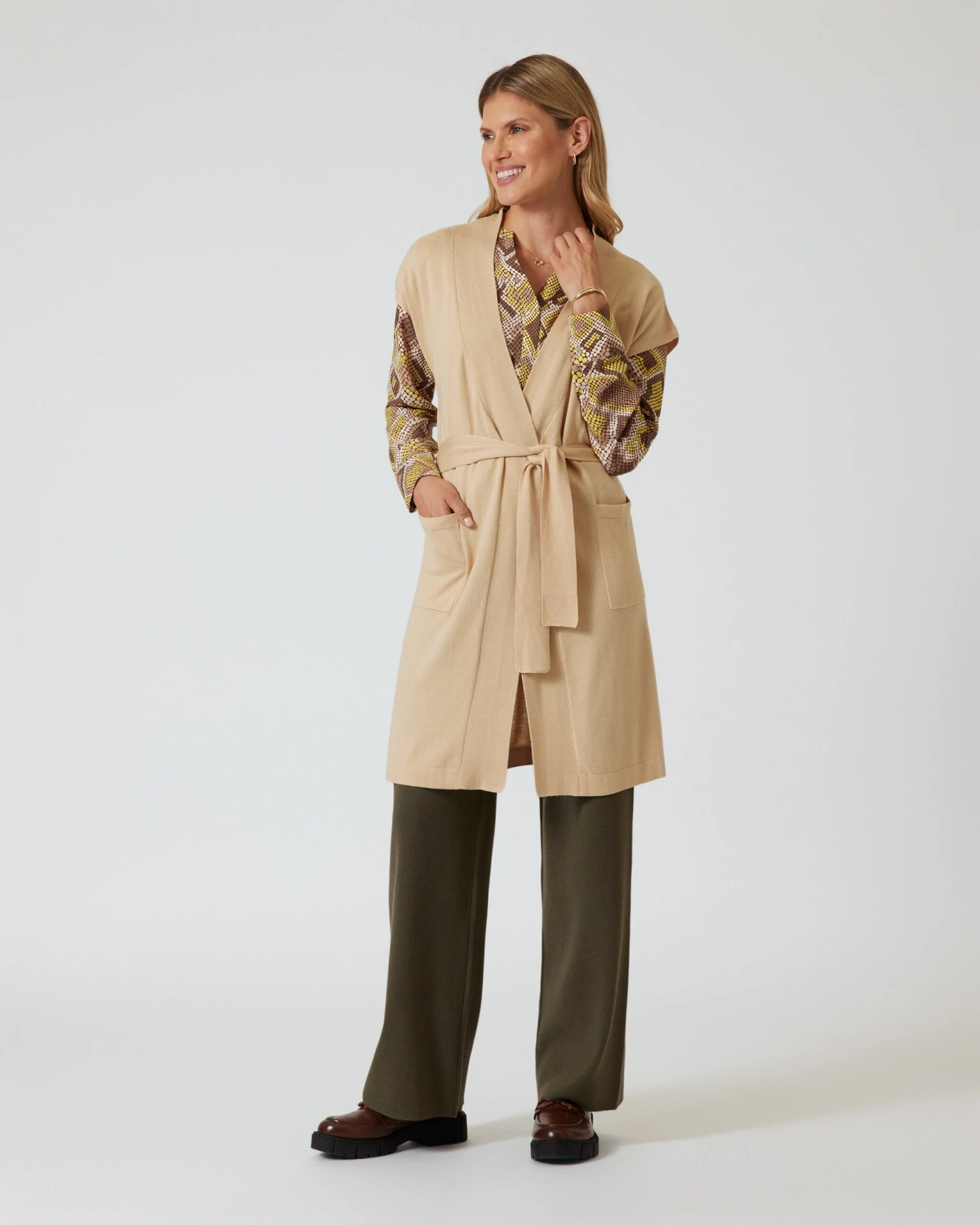 Diese schicke Strickweste verleiht Ihrem Outfit im Handumdrehen das gewisse Etwas. Die offene, betont lange Form mit Schalkragen hat einen super Schlank-Effekt. Sie können die Weste aber auch mit dem Ton in Ton Bindegürtel in Form bringen.