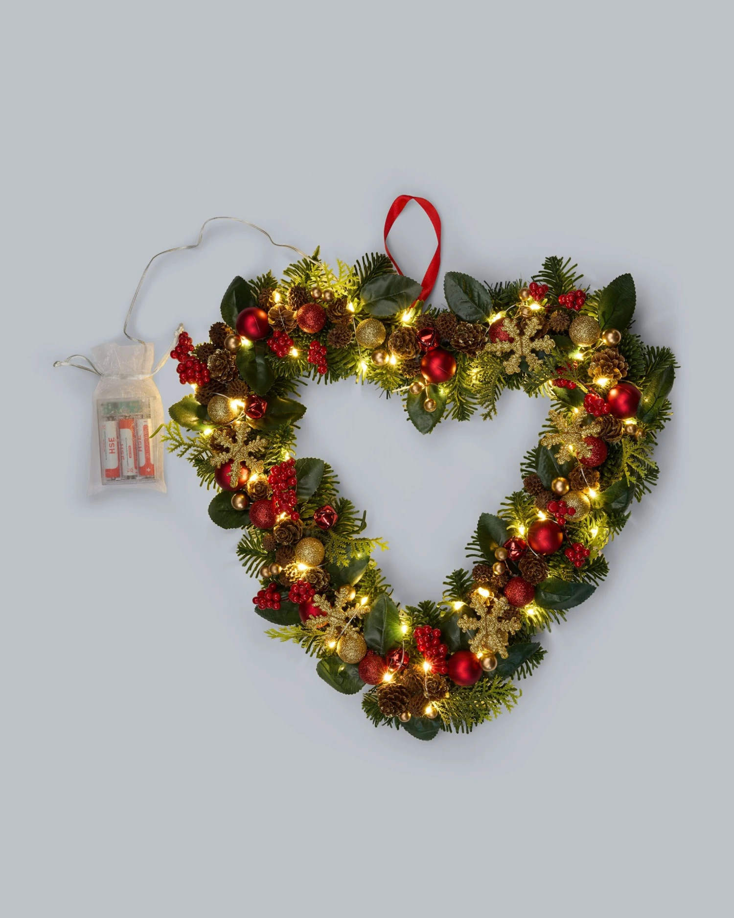 | Lieferumfang: | 1x Weihnachtlicher Herzkranz mit LEDs | |