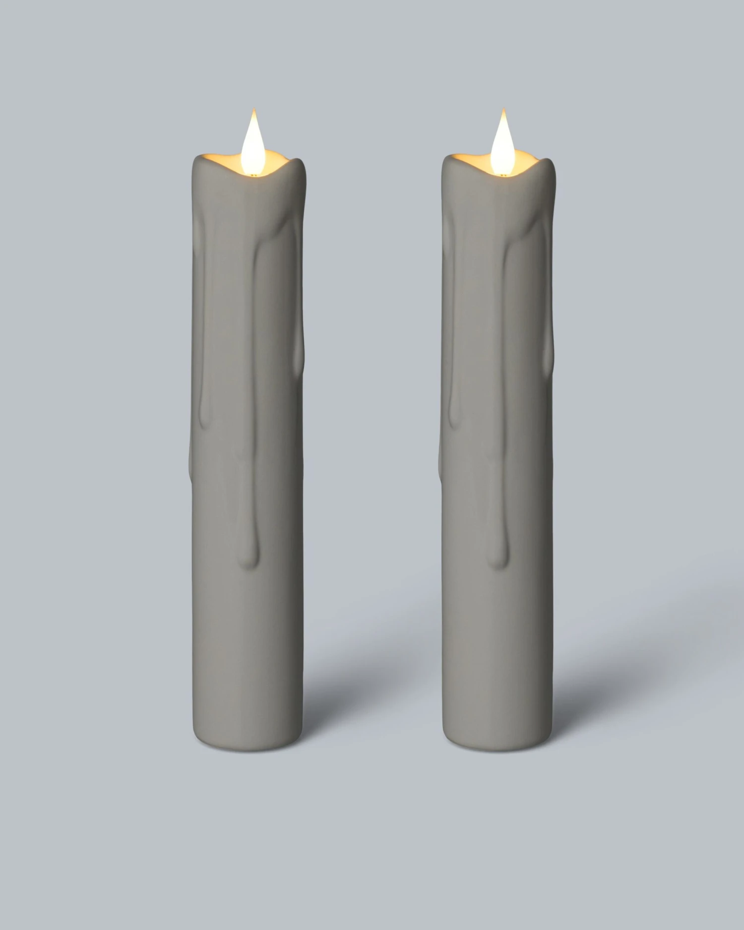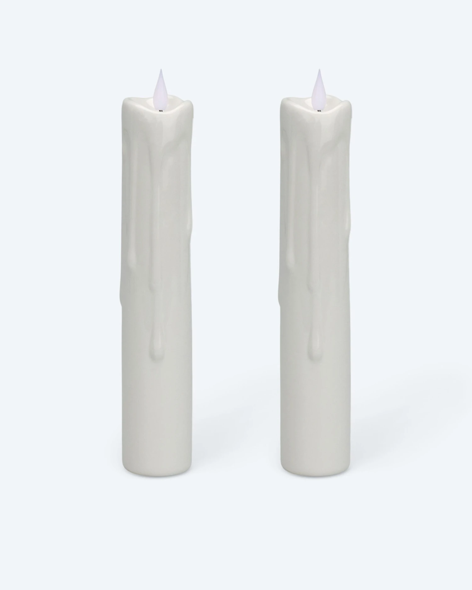 Egal, wo Sie diese 2 LED-Kerzen platzieren: Sie sorgen mit dem warmweißen Licht für ein stimmungsvolles Ambiente mit klassisch-zeitlosem Deko-Charme. Die Kerzen bestehen aus Keramik und wirken dank Regentropfenflammen und Wellenrand mit herunterlaufenden Tropfen besonders echt. Durch die imposante Höhe von fast 27 cm sorgen Sie mit dieser Deko für unübersehbare Lichteffekte und setzen gemütliche Akzente. Mit praktischem 6-Stunden-Timer.