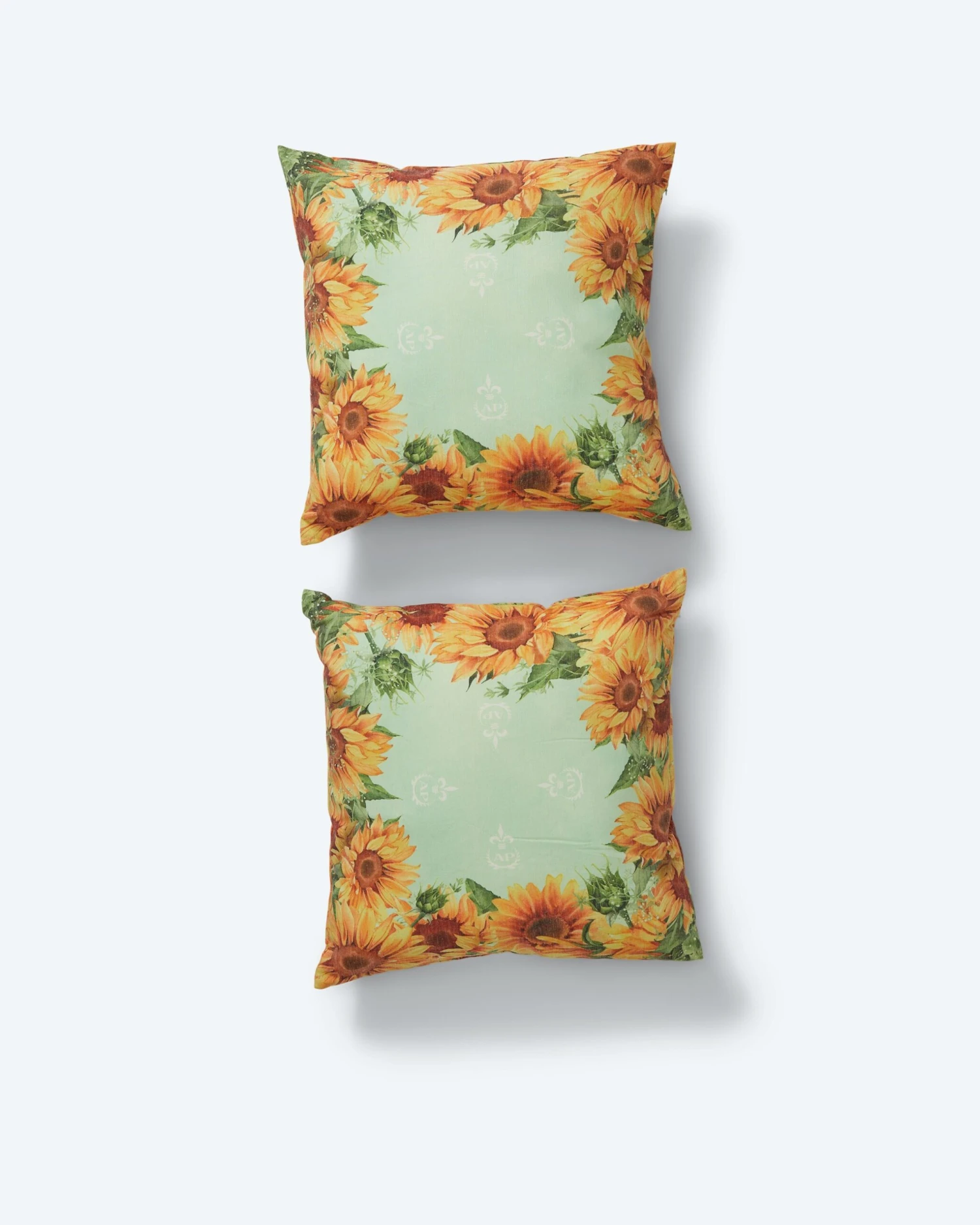 Das stilvolle 2-teilige Kissen-Set zählt zur Design-Serie „Sunflower“ und ist mit einer Sonnenblumenbordüre verziert. Mittig ist das Alfredo Pauly Logo aufgedruckt.