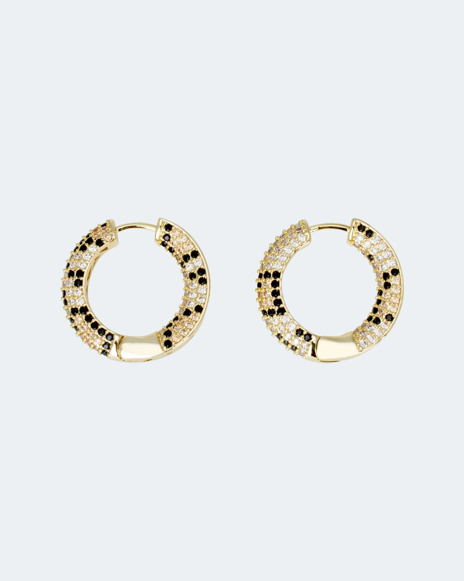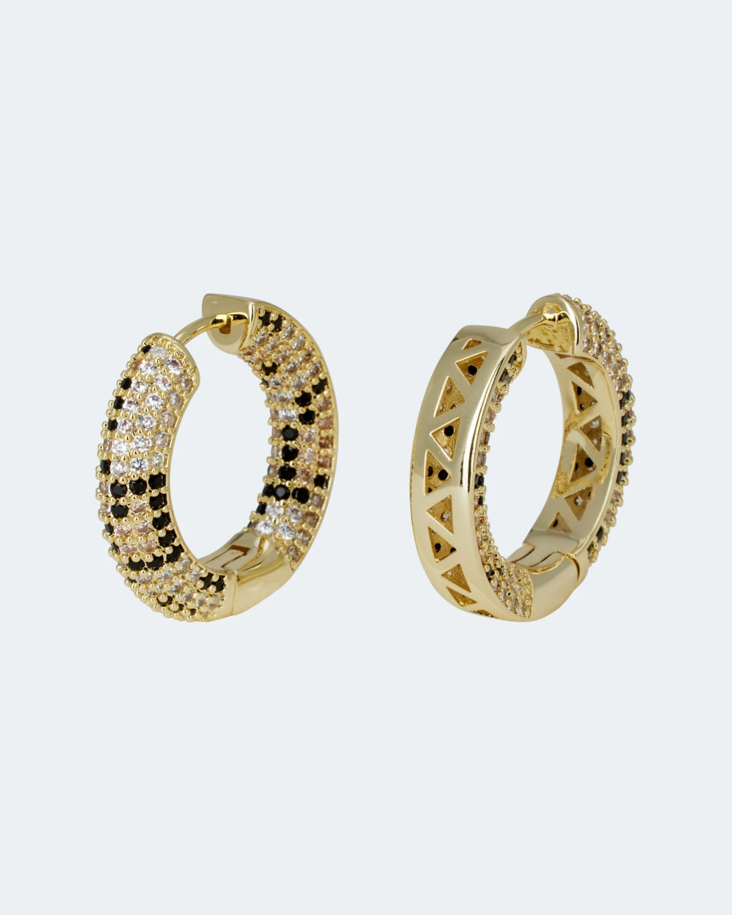Zur stylischen Mode von Designer Brian Rennie kommt hier der passende Schmuck: Das glamouröse Leo-Muster auf diesen Creolen setzt sich aus 356 Zirkonia in den Farben Schwarz, Weiß und Champagner zusammen. Eine Hälfte der Creole ist zudem mit einem dreieckigen Lochmusterrahmen versehen. Veredeln Sie jeden Ihrer Looks mit diesen Eyecatcher-Creolen. In Weiß- oder Gelbgold-Optik erhältlich.