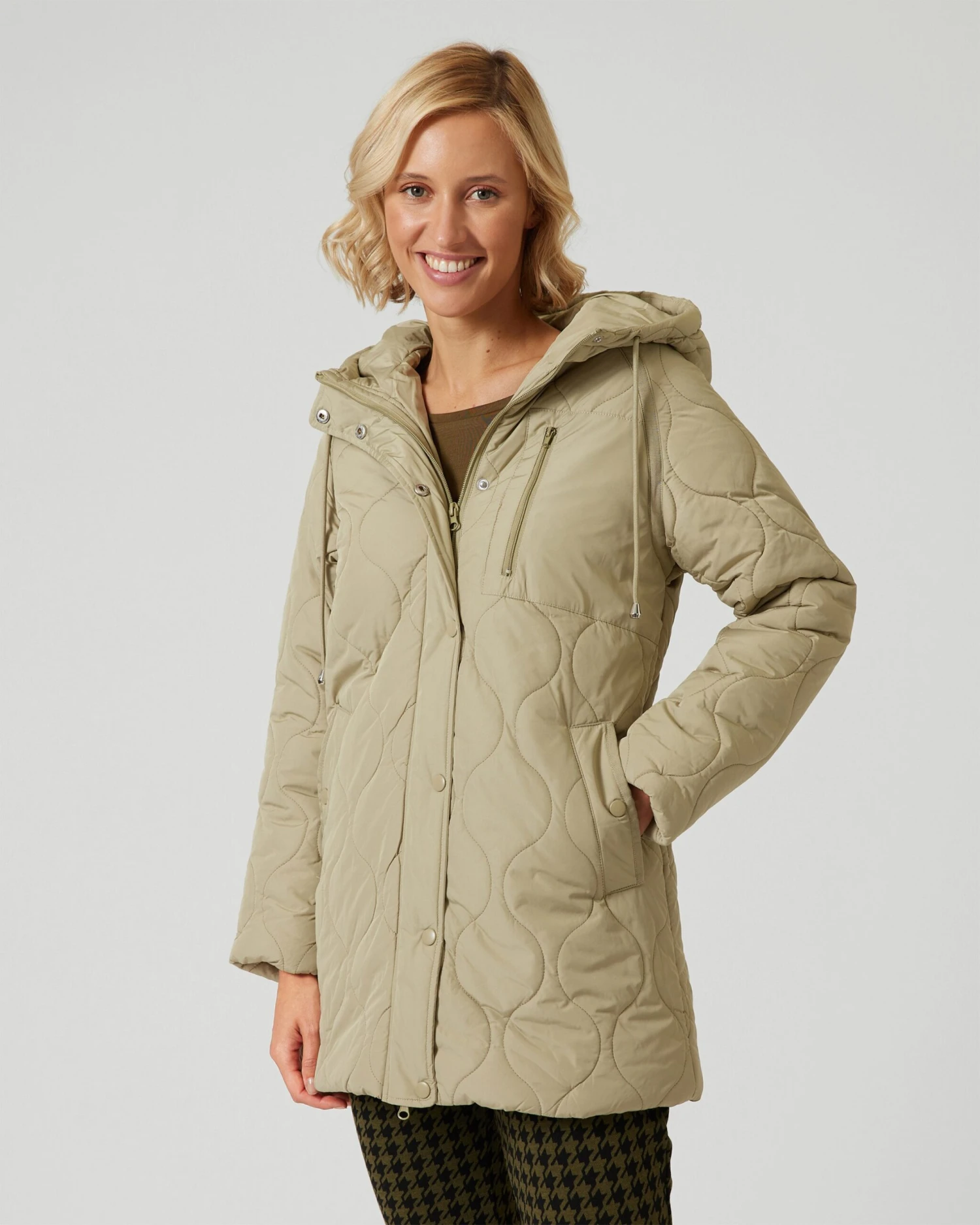 Im Herbst und Winter ist diese Jacke ein echtes Muss. Die Longjacke hält schön warm und ist allover mit einem charmanten Steppmuster versehen. Die praktische Kapuze schützt vor Wind und Wetter und schenkt ihr einen jugendlichen, frischen Touch. Praktisch und schick: ein verdeckter Zwei-Wege-Reißverschluss mit Druckknopfverschluss und Eingrifftaschen, ebenfalls mit Druckknopfverschluss. Freuen Sie sich auf diesen Allrounder für die kalten Tage.