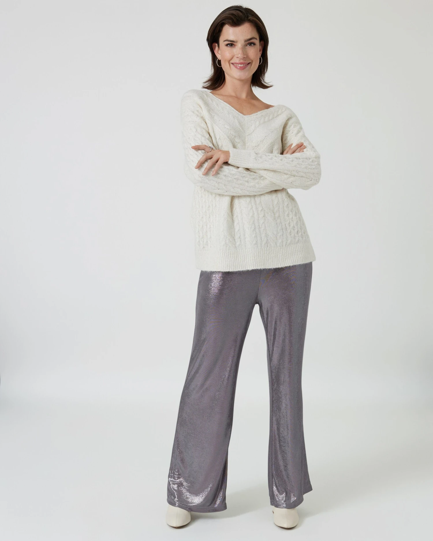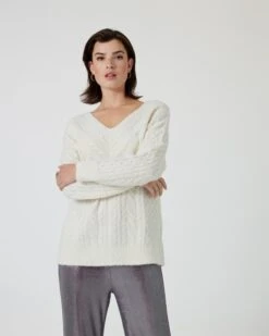 Mindestens einen Vorteil hat die kalte Jahreszeit – wir können endlich wieder die stylischen Kuschelpullover aus dem Schrank holen. Also einen wie diesen unwiderstehlichen Longpullover mit edlem Zopfstrickmuster auf der Vorderseite und den Ärmeln. Der etwas längere Pulli ist figurumspielend geschnitten. So formt er eine schöne Silhouette und kaschiert zugleich eventuelle Pölsterchen.