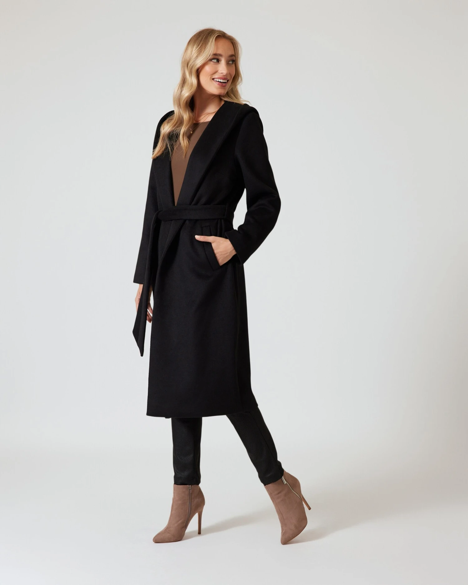 Dieser Mantel wird Sie mit seinem zeitlosen Stil und seiner unübertroffenen Eleganz verzaubern. Die lange Form und die Kapuze schützen Sie vor Wind und Wetter und verleihen Ihnen eine luxuriöse Ausstrahlung. Der elegante Schalkragen verleiht dem Mantel eine edle Note und unterstreicht seine Individualität. In hochwertiger Qualität gefertigt und mit einem Futter versehen, bietet dieser Mantel höchsten Tragekomfort und hält Sie schön warm. Mit dem Bindegürtel in der Taille können Sie Ihre Figur betonen und einen femininen Look kreieren. Tauchen Sie ein in die Welt der Couture und setzen Sie ein Statement der Eleganz.